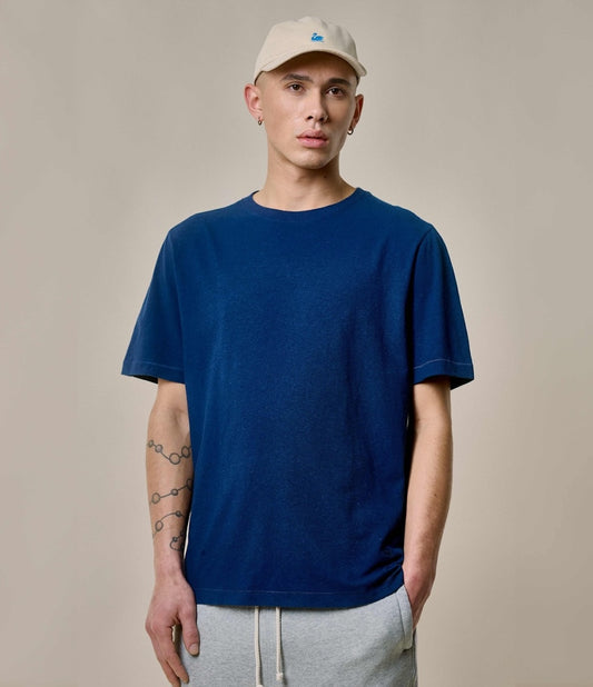 MERZ B. SCHWANEN HPT01 COTTON/ HEMP T-SHIRT - INK BLUE