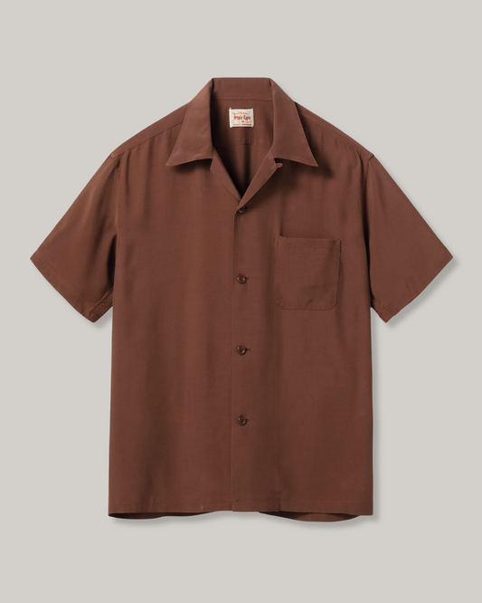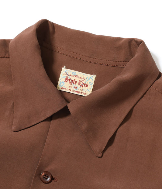 STYLE EYES - PLAIN RAYON BOWLING SHIRT - BROWN