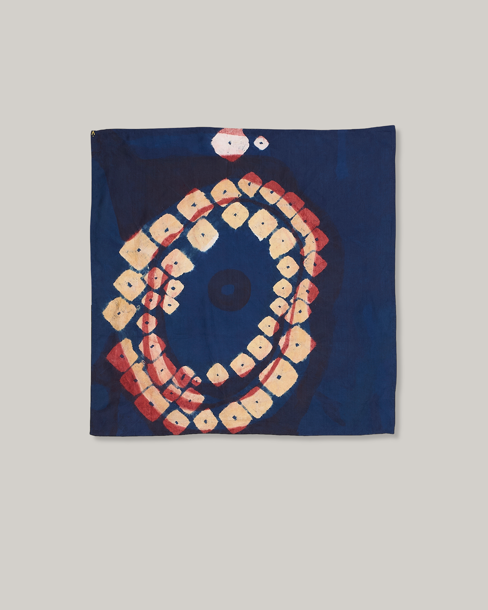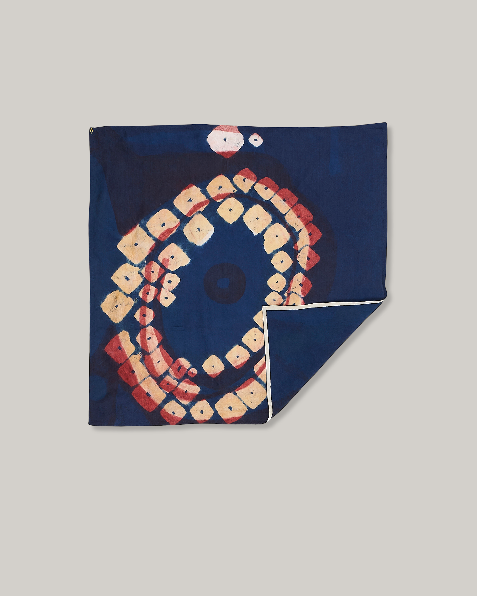 Handspun yarn using Bandhani, a traditional tie and dye technique done in India. Each piece's colour and design vary due to the hand-dyeing nature involved in production.
