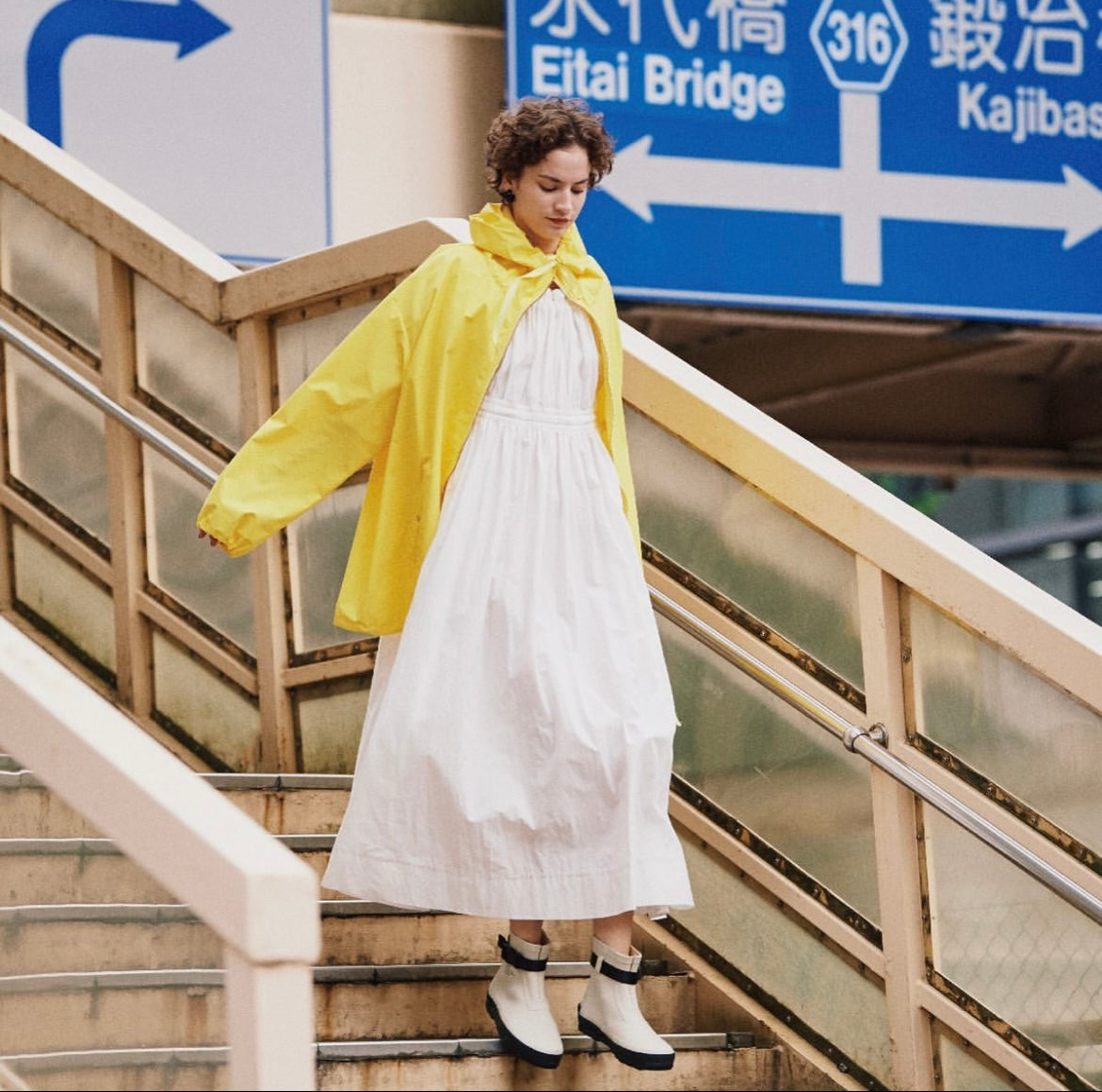 Inspired by rubber work boots , these might be the quintessential snow boot. Made in stealthy black with no lace front and single seatbelt cord fastening at the ankle. Chic and waterproof.