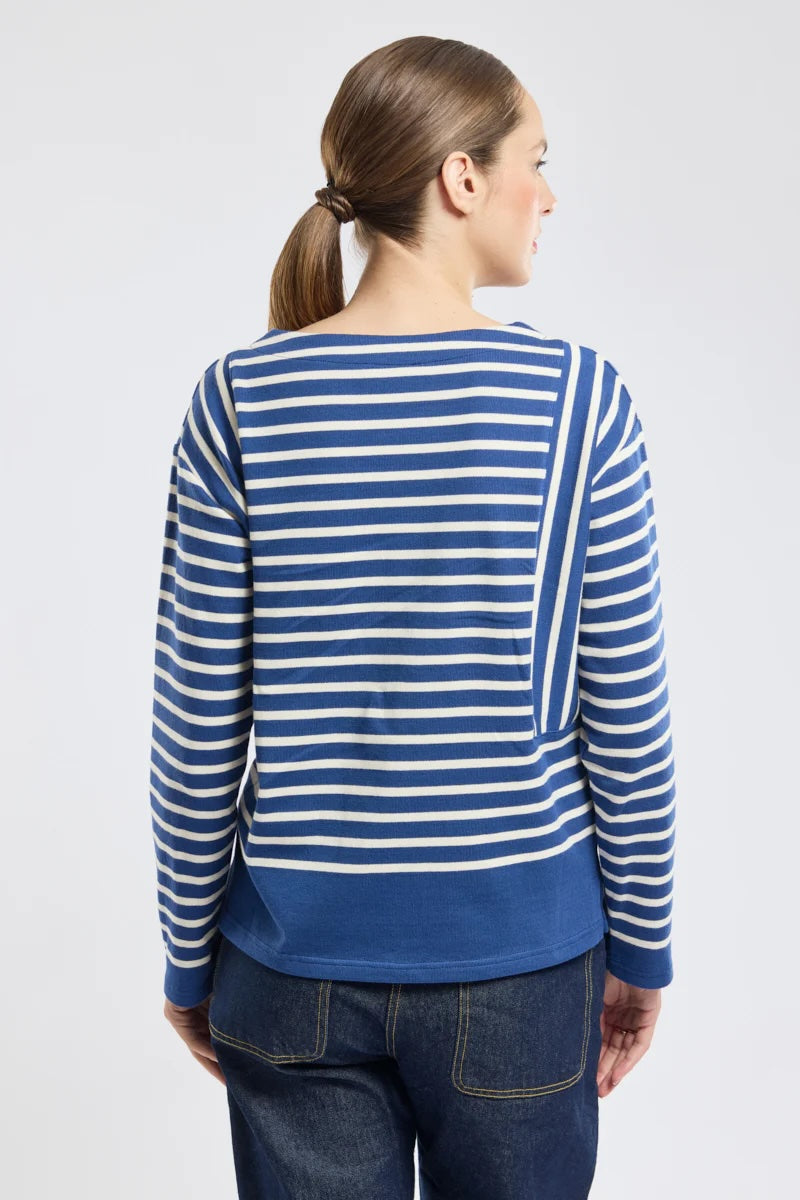 ARMOR LUX LADIES BRETON BOAT NECK SHIRT - TWILIGHT BLUE/ NATURE
