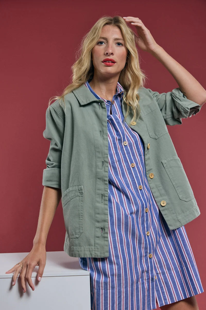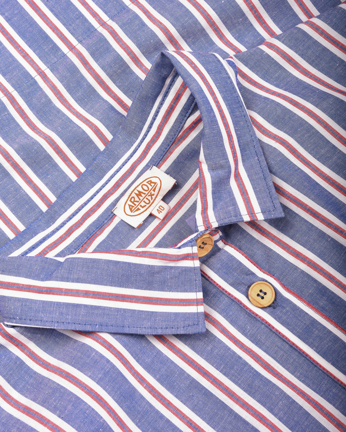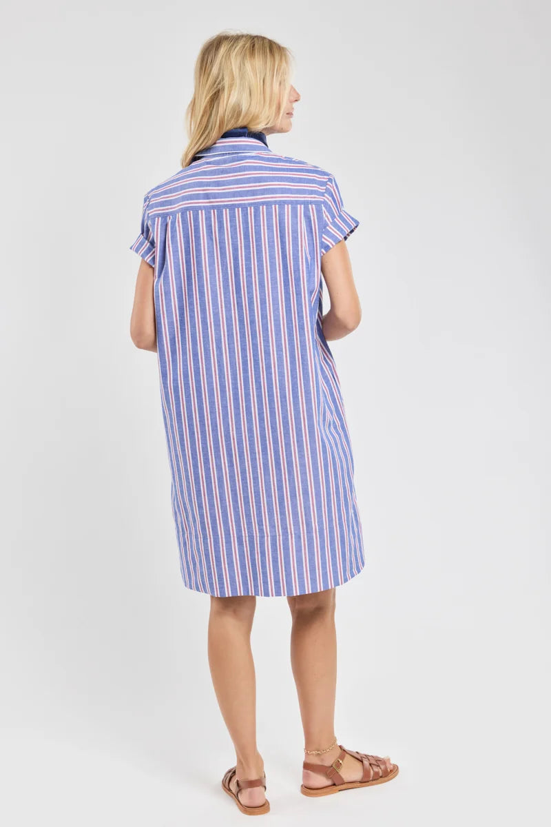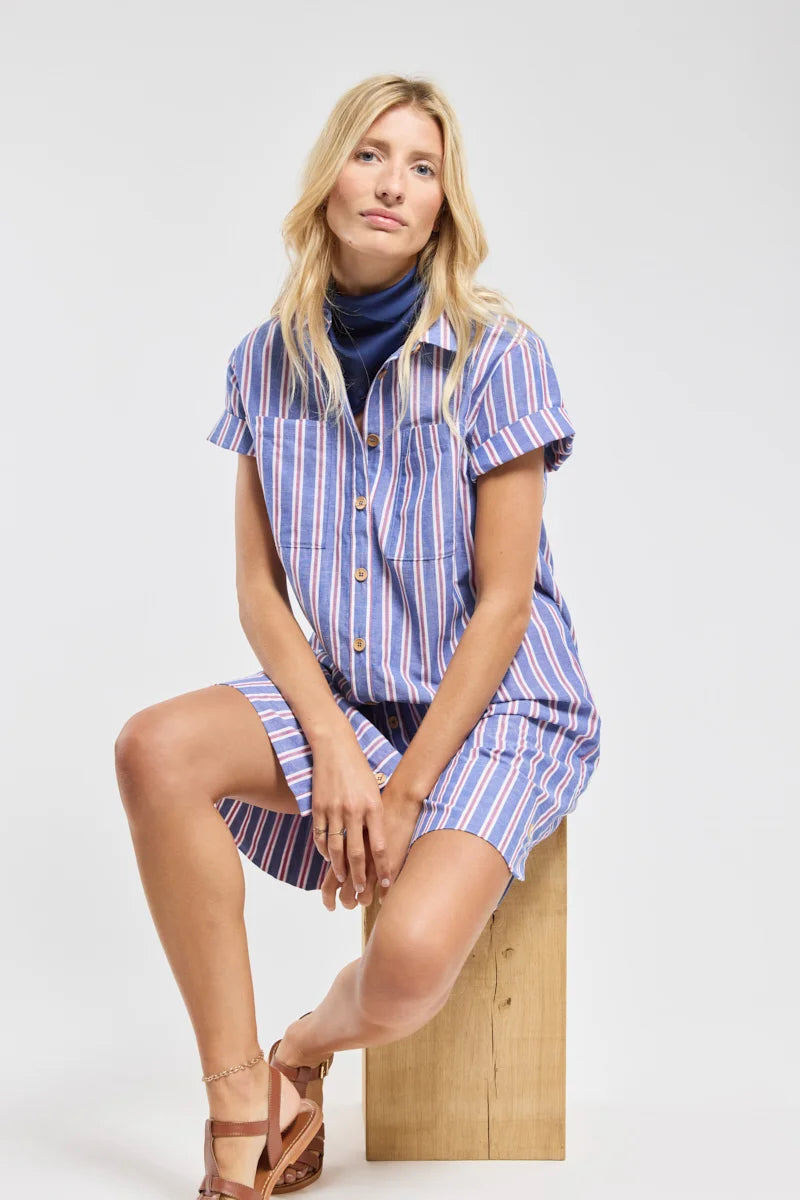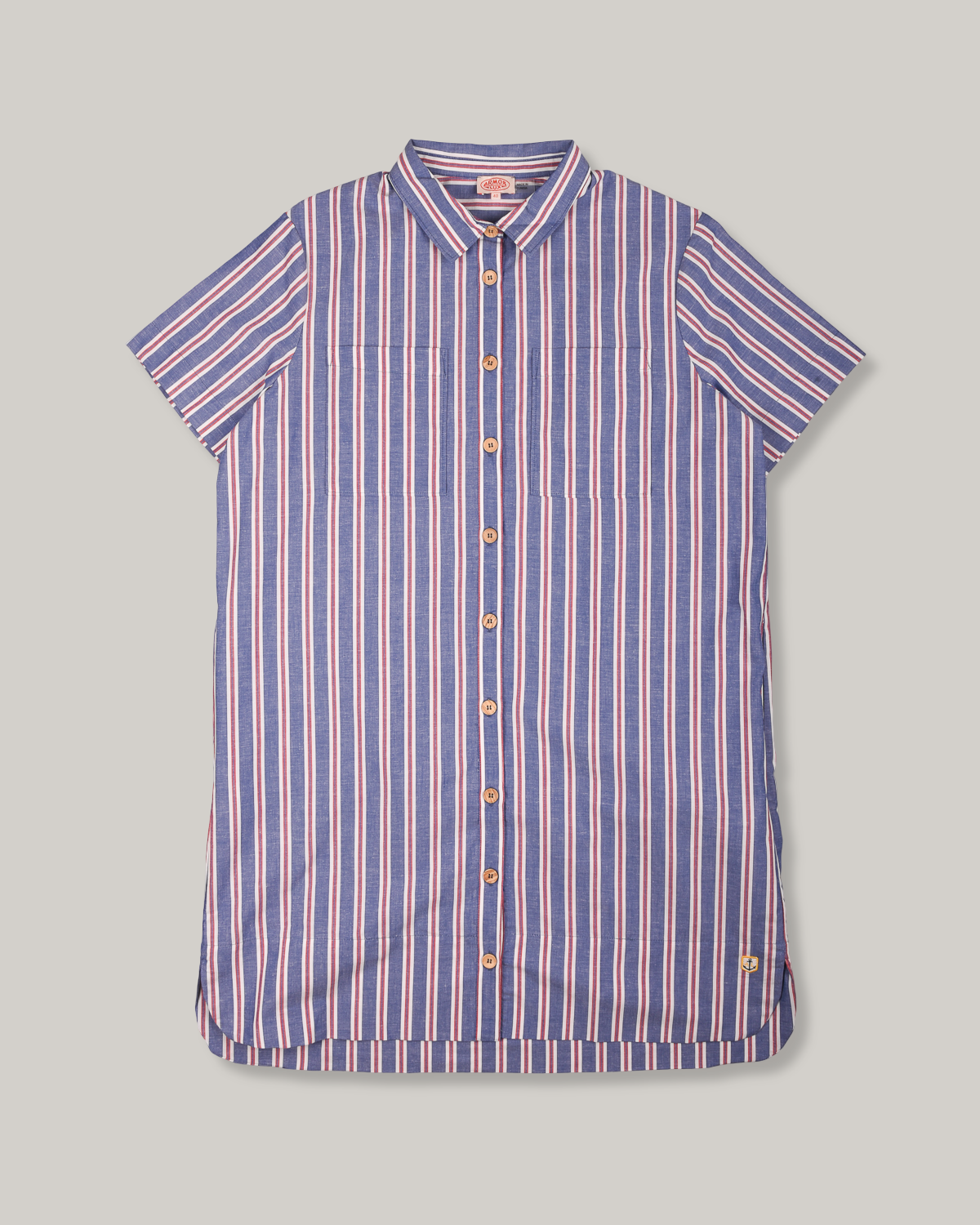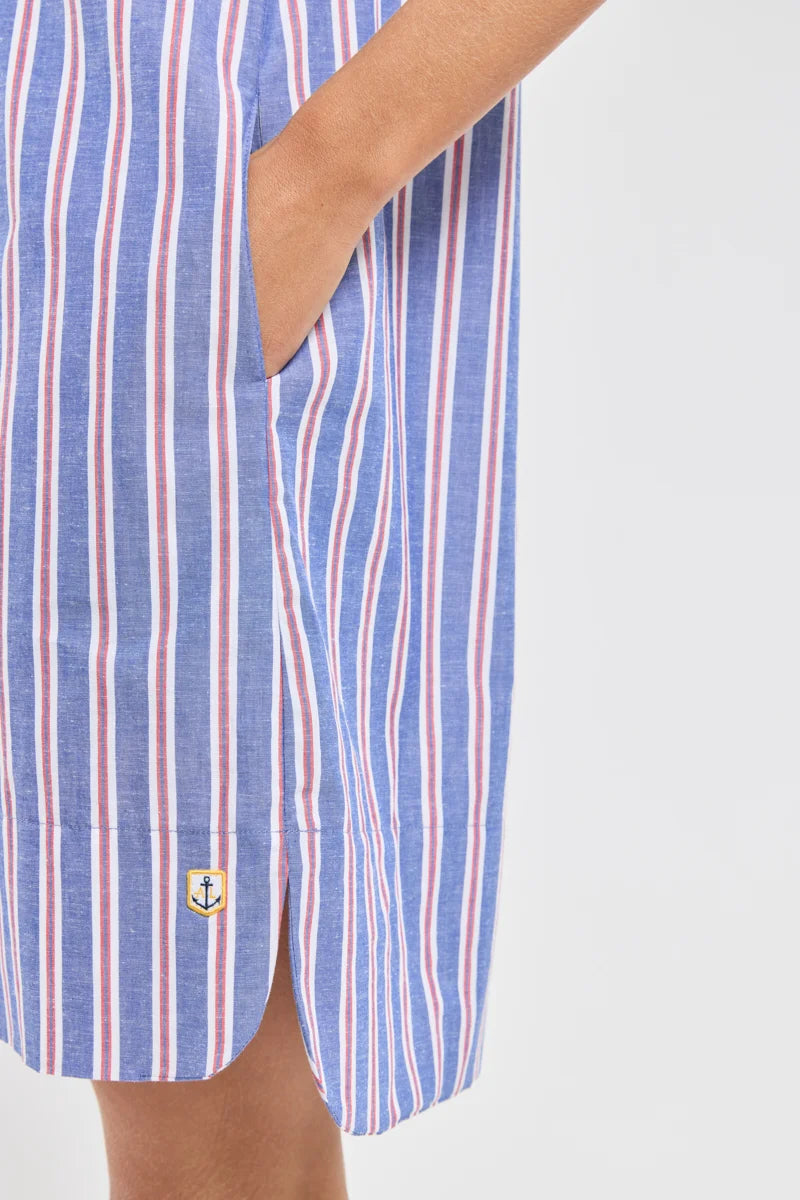 ARMOR LUX STRIPED SHIRT DRESS - SEAL/ECRU/ ROUGE