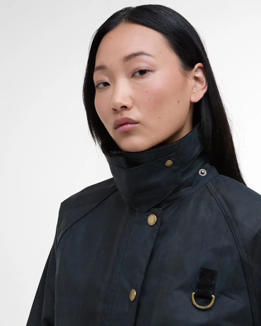 Introducing the Barbour Dundee Spey Waxed Jacket - a trusted companion for chilly walks and riverside escapades. Designed with a shorter cut, a classic corduroy collar, and a waxed throat flap, it combines timeless style with modern functionality. Thoughtfully placed pockets and a practical D-ring ensure your essentials stay secure on every adventure. Rooted in fishing heritage and celebrated for its enduring practicality, this jacket is perfect for everyday wear. Oversized. 6oz wax cotton in Dundee tartan. Back Length: 57cm