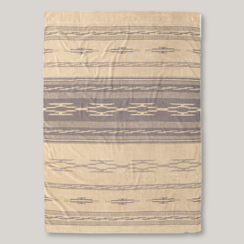 BASSHU COTTON PILE BLANKET LARGE - NATIVE MOTIF BEIGE