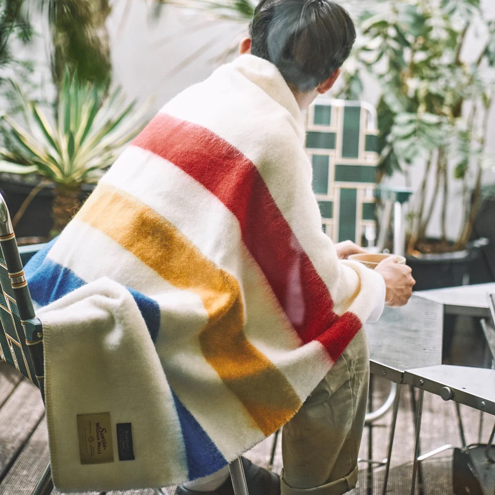 The Wool Blanket is inspired by the feel and comfort of 1800's designed blanket. They are produced in a region called Izumi Otsu, famous for their wool blanket production, where quality and craftsmanship have been passed down from generation to generation.