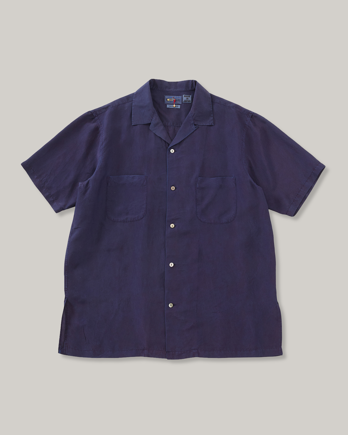 Timeless short-sleeved shirt made in the finest indigo dyed silk. Made from Habutae, a plain silk weave fabric known for its lustrous appearance, it literally translates to soft and downy in Japanese. With a nice open collar, it is traditionally boxy with a flat bottom and shimmering shell buttons. Silently stunning.