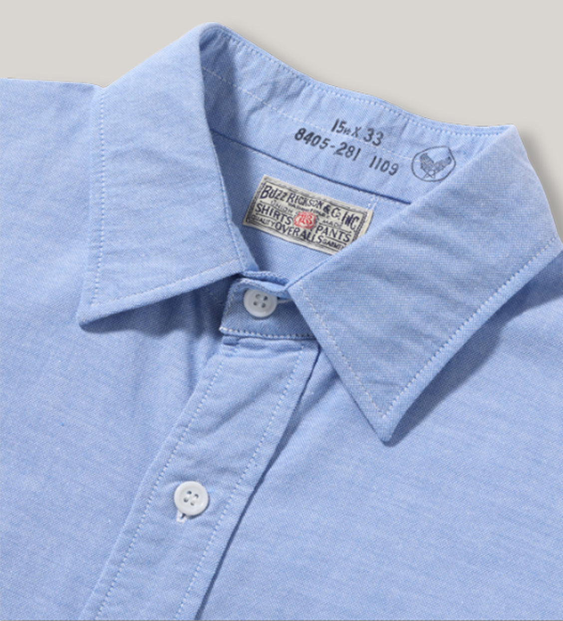 BUZZ RICKSON x PPHH - 4OZ COTTON OXFORD CLOTH SHIRT - BLUE