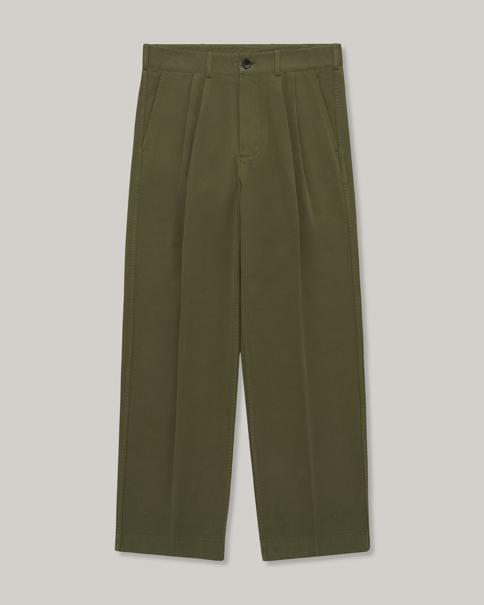 KNICKERBOCKER CANAL PLEATED TWILL PANT - OLIVE