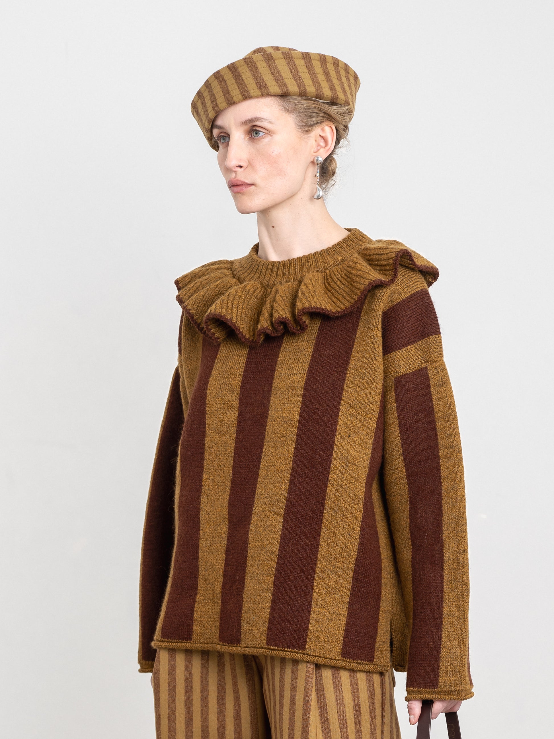 A classic sailor’s hat crafted in Portuguese striped wool. A fun accessory to brighten any ensemble.