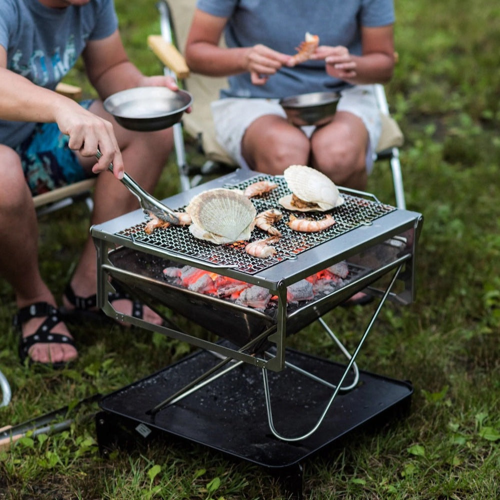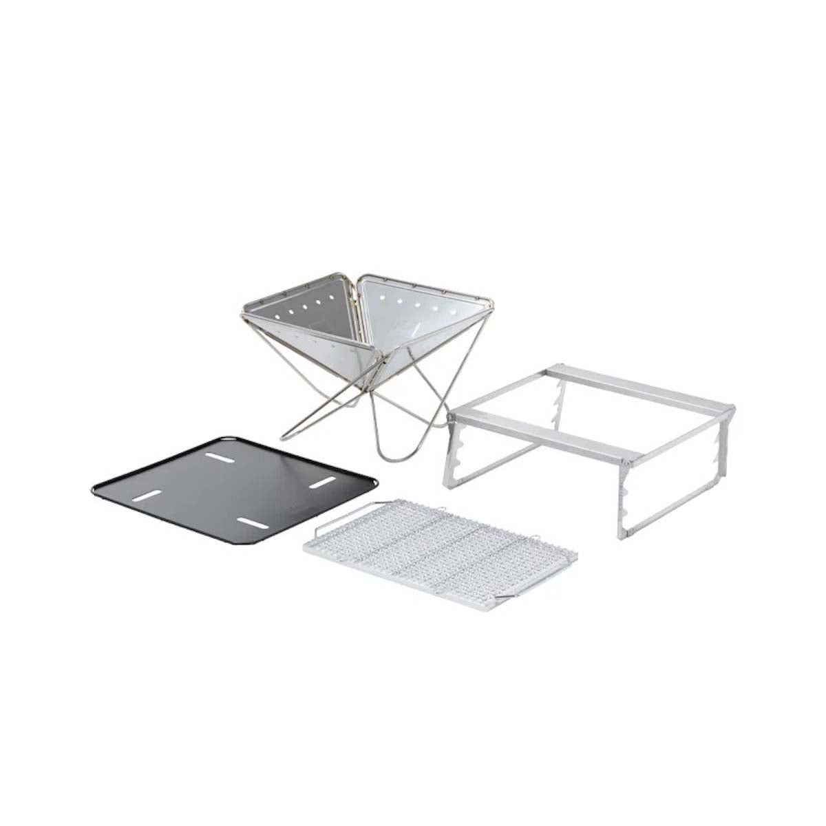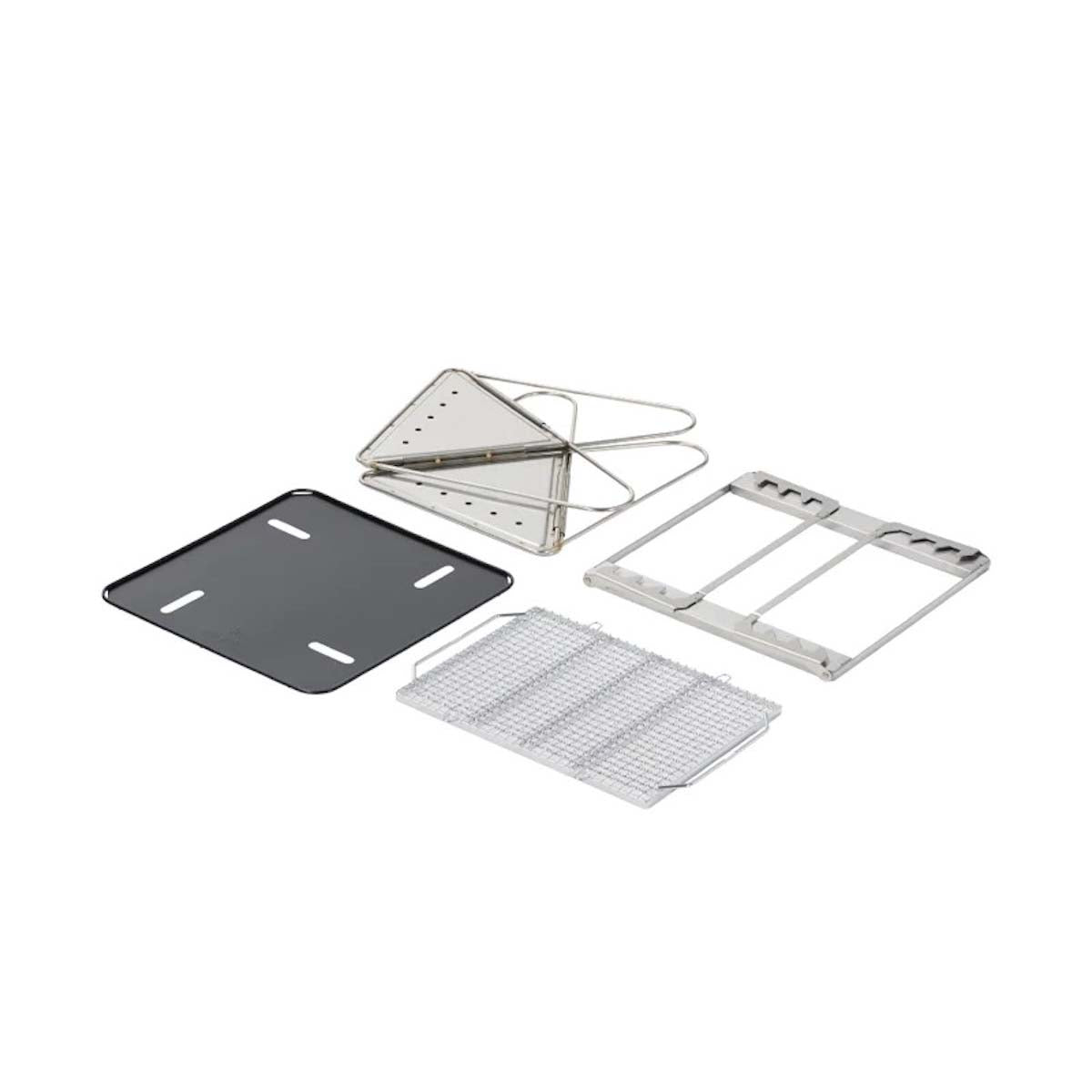 Winner of The Good Design Award 2022 for its innovative structure, The Takibi Fire and Grill from Snow Peak is made of durable stainless steel and designed in Japan for a lifetime of use. Packable, portable and modular, use the Takibi Fire and Grill to create a gathering anywhere. The five piece set includes Grill Net, Grill Bridge, Pack & Carry Fireplace L, Baseplate and Carrying Case.
