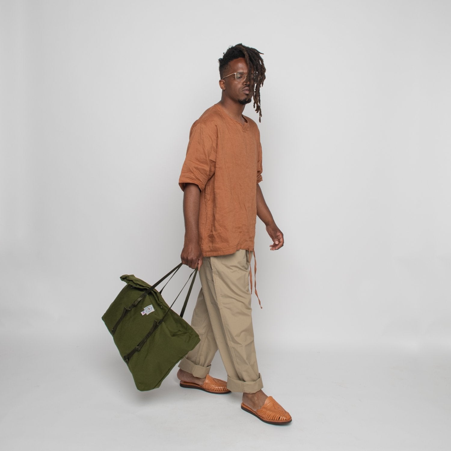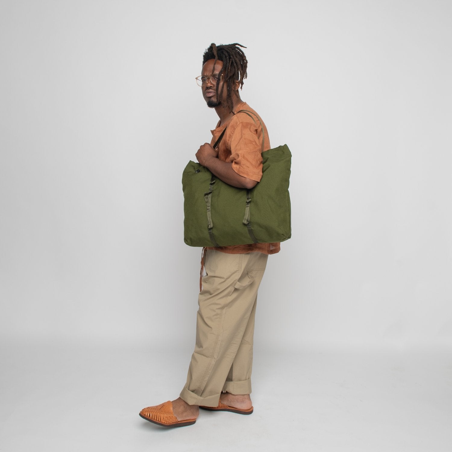 EM’s Large Climb Tote combines the casual portability of a classic tote bag with the ruggedness of durable rock climbing gear. Water-resistant Cordura nylon fabric combined with mil-spec tubular nylon webbing make it rugged and durable while snap button closure and climbing-spec ‘daisy chain’ webbing (a chain of small loops reinforced with bar-tacks) along the face of the bag increase utility and round out the iconic climbing aesthetic. 21 litres. Made in USA.