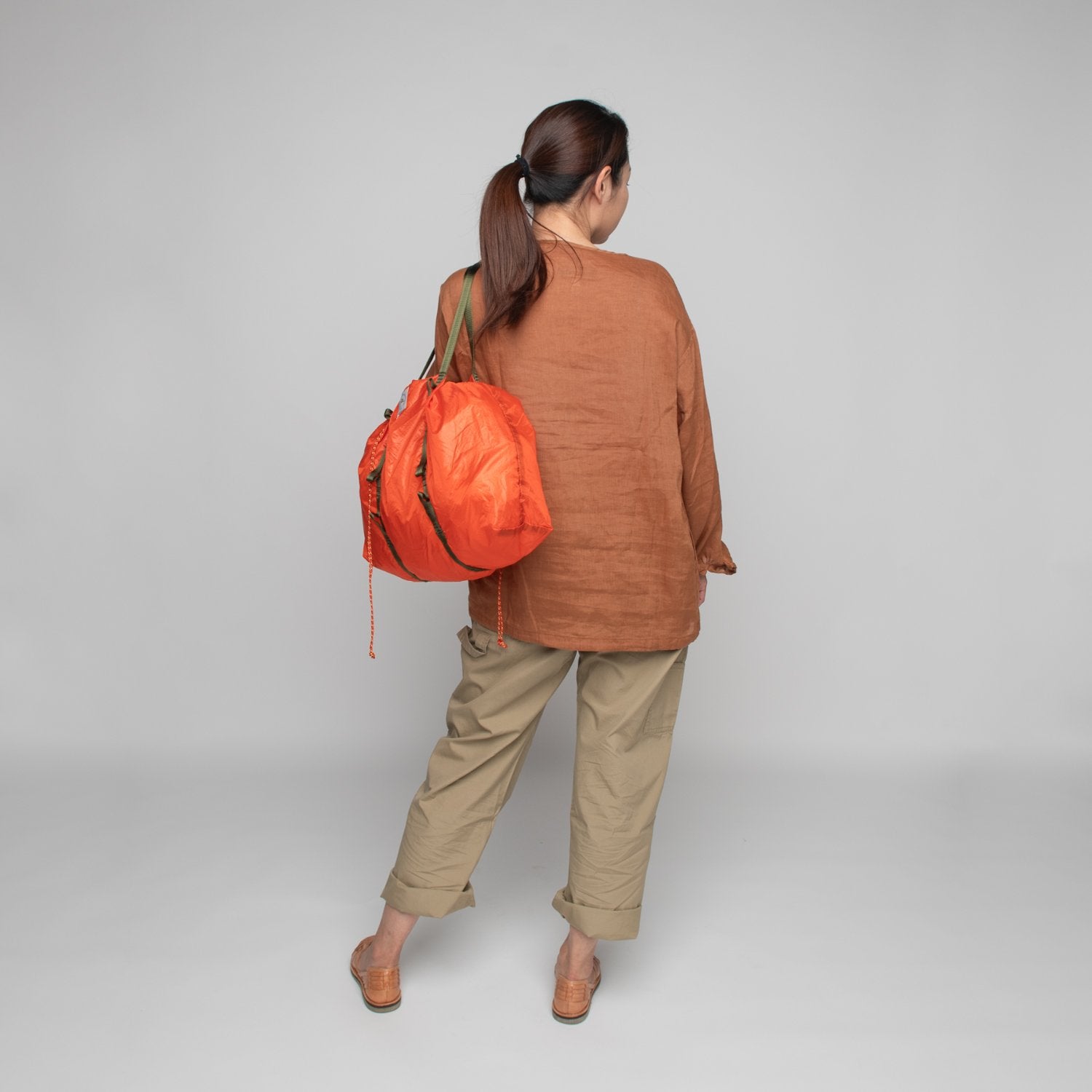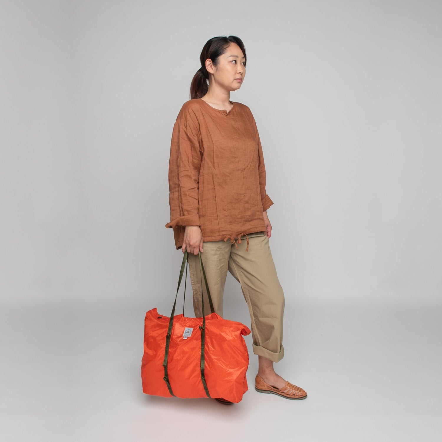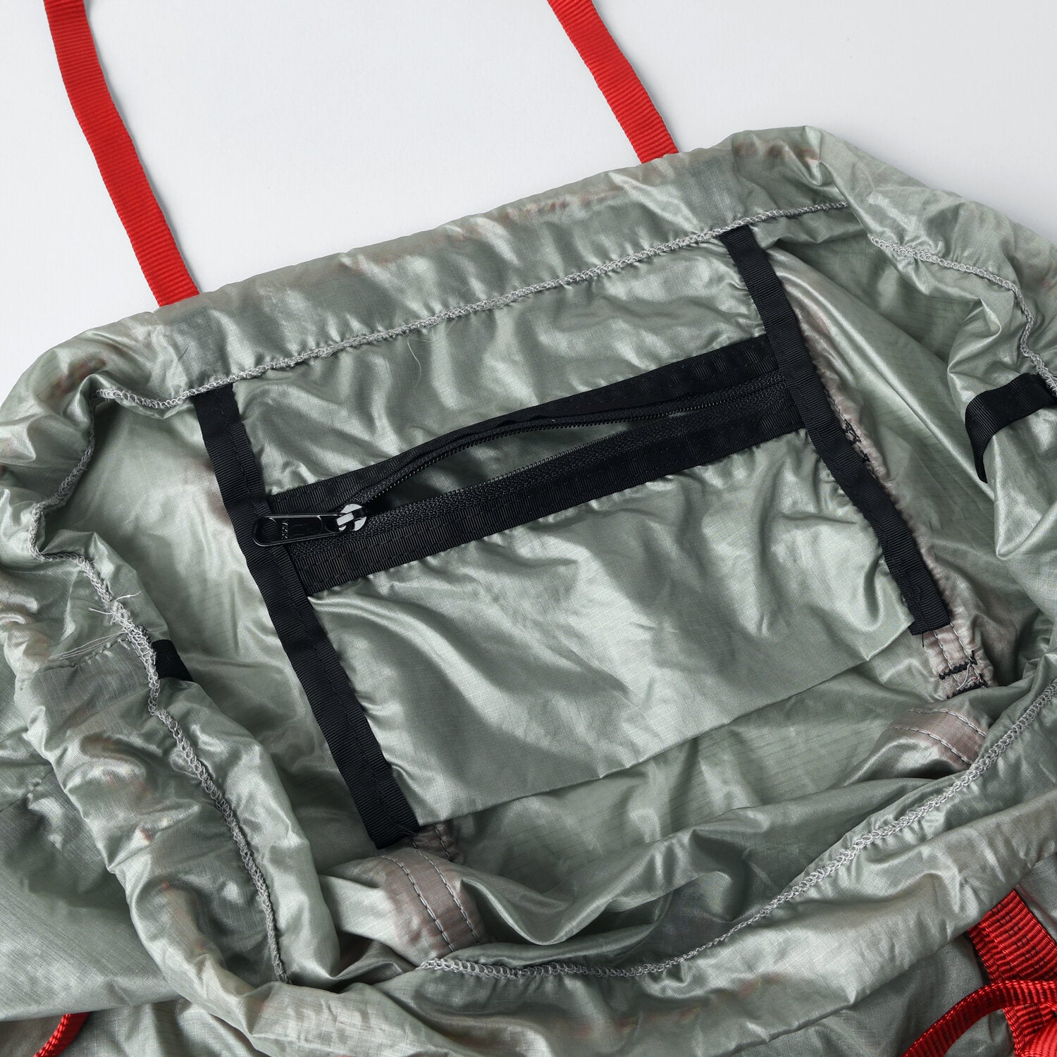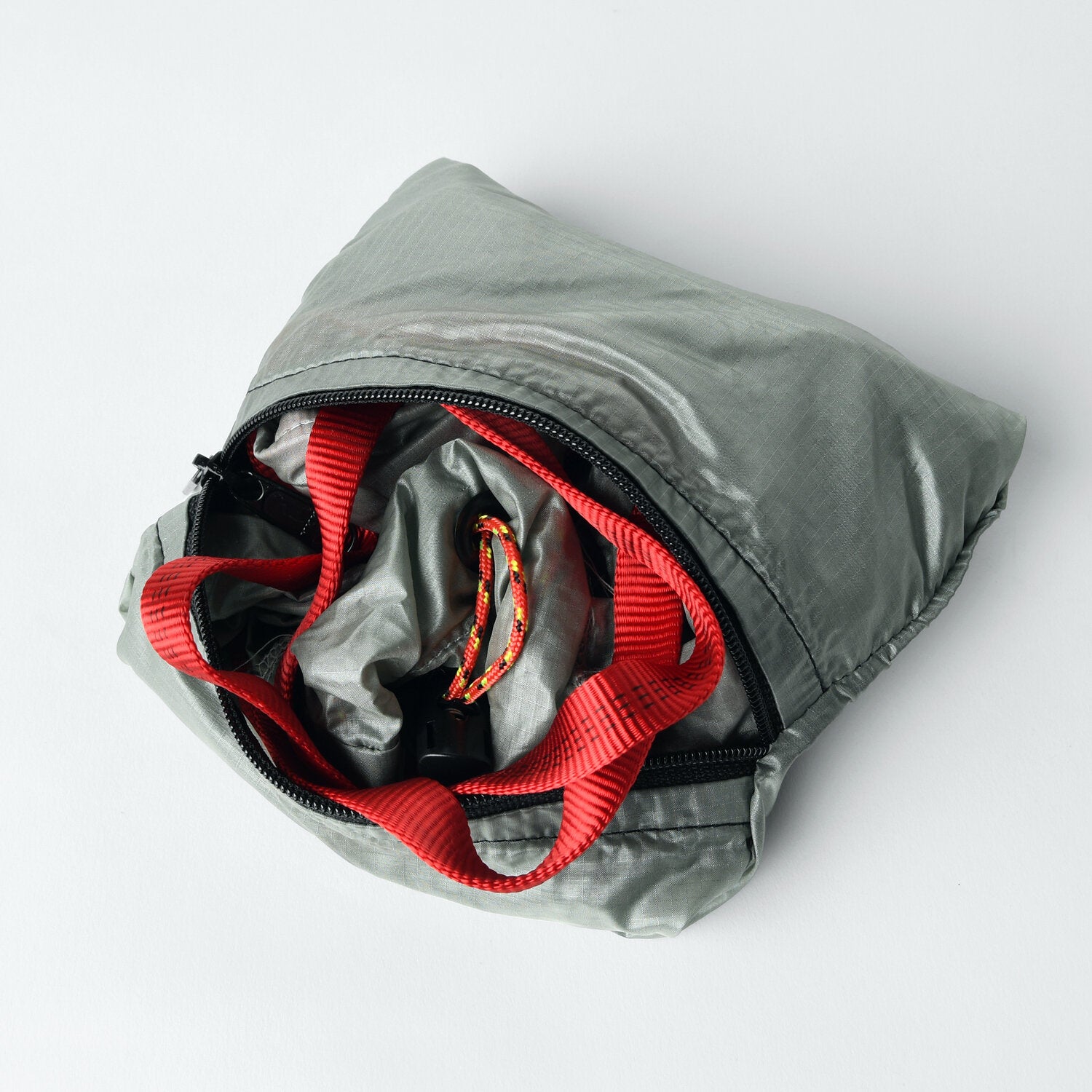 EM’s Packable Large Climb Tote provides 19 litre carrying capacity in a lightweight and easily stowable package. Constructed with lightweight parachute nylon fabric that is durable and tear resistant. Drawstring closures, heavy duty zipper, and climbing-spec ‘daisy chain’ webbing (a chain of small loops reinforced with bar tacks) along the face of the bag increases utility and round out the unique aesthetic