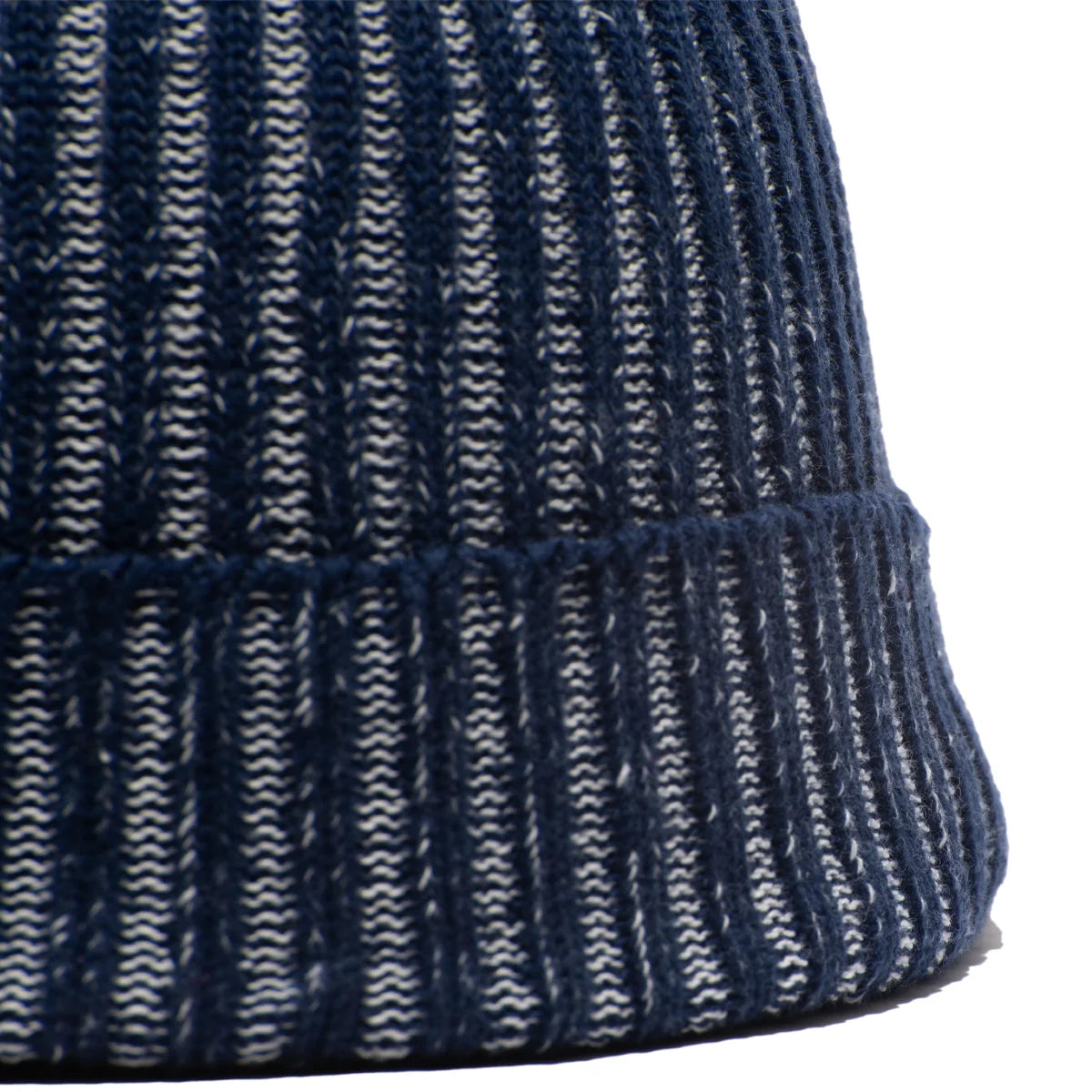 This is an unusual knit hat with strong elasticity and when worn, the ribs open to reveal the different colored yarn inside.