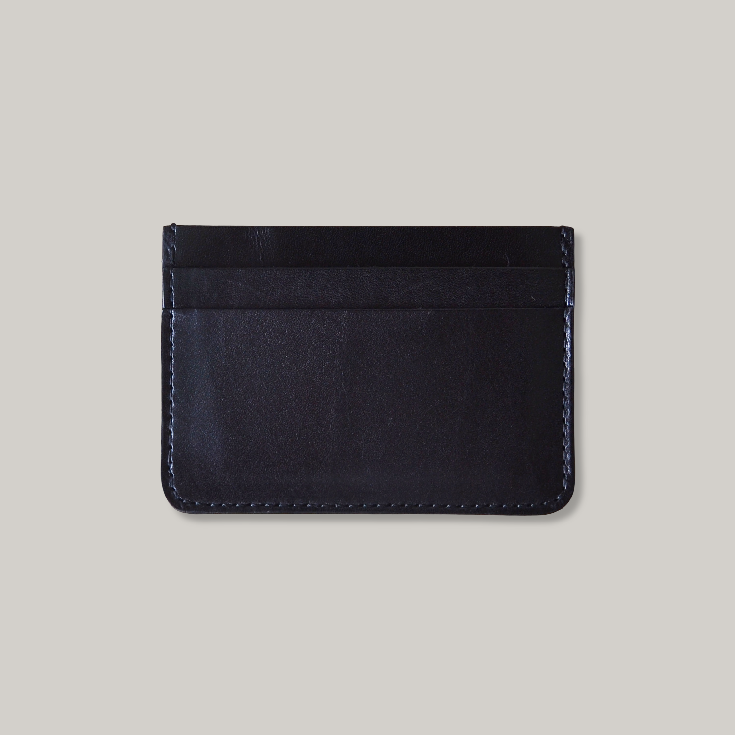 Standard card sleeve wallet black colour. Two card sleeves in addition to the main pocket. Invisible logo, minimalist design.