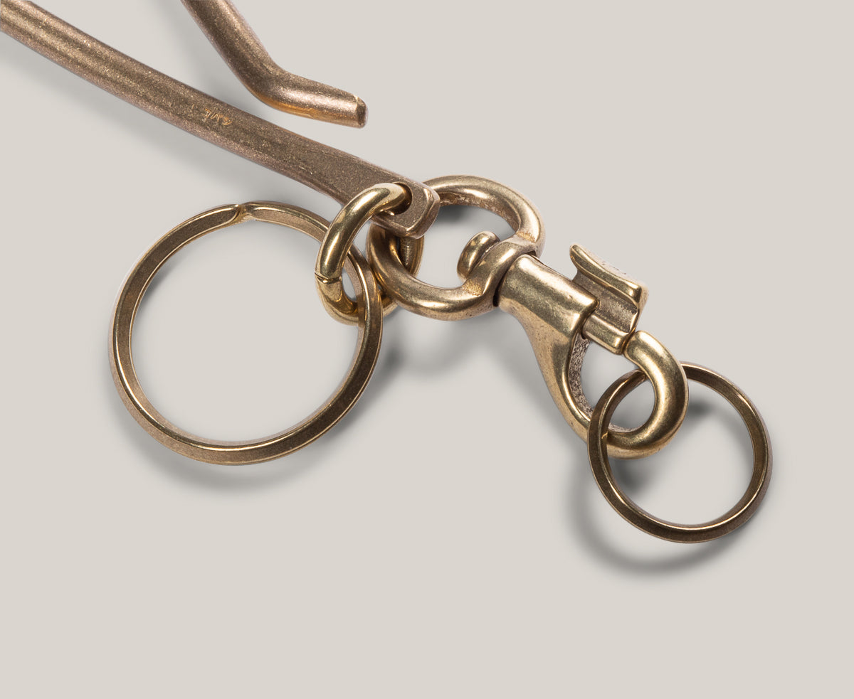 Handmade key hook with a sand casted snap and a detachable small key ring so you can take your extra keys off and still keep the hook attached to your belt, bag or jeans.