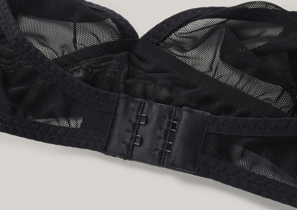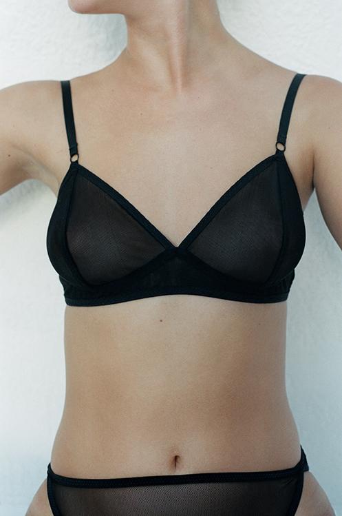 Equal parts structure and ease, our wire-free balconette is a modern nod to mid century intimates. An easy v neckline with adjustable elasticized straps and back closure offer moderate support for everyday wear. Made in our premium deadstock mesh sourced from warehouses in Los Angeles, with tailored, single layer cups and a double layer frame at underbust for added support.