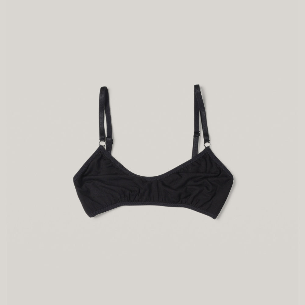 The Recline Bra offers a gentle scooped neck, adjustable shoulder straps, and pullover style for ultimate ease of wear. Made from a double layer of soft, environmentally-conscious bamboo. Named for Mies Van Der Rohe’s Reclining Chair series as an ode to moments of calm in your everyday.