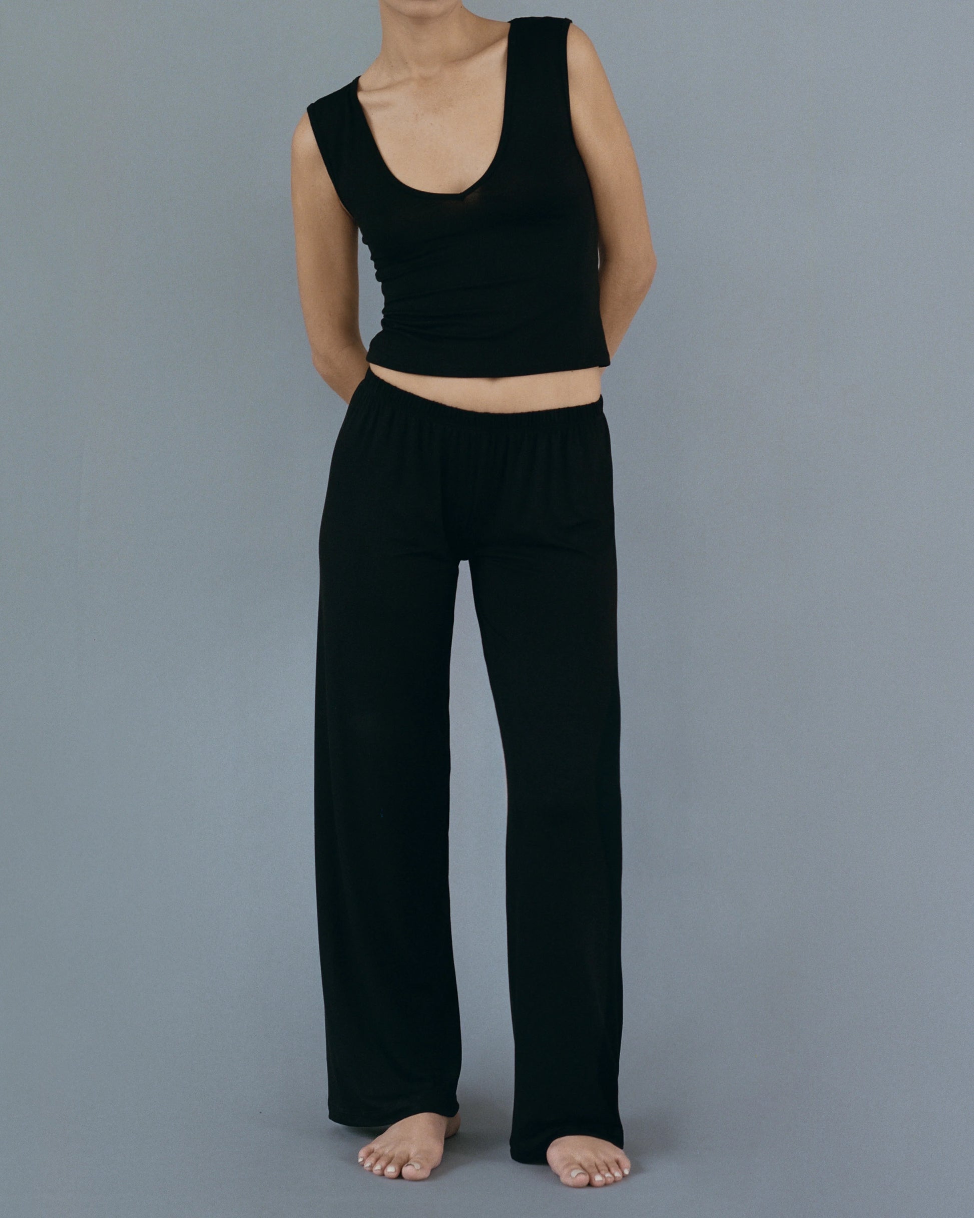 Kye's perspective on a pyjama pant. The Recline Pant is soft and slouchy. Made from a luxuriously soft, environmentally-conscious bamboo. Named for Mies Van Der Rohe’s Reclining Chair series as an ode to moments of calm in your everyday.