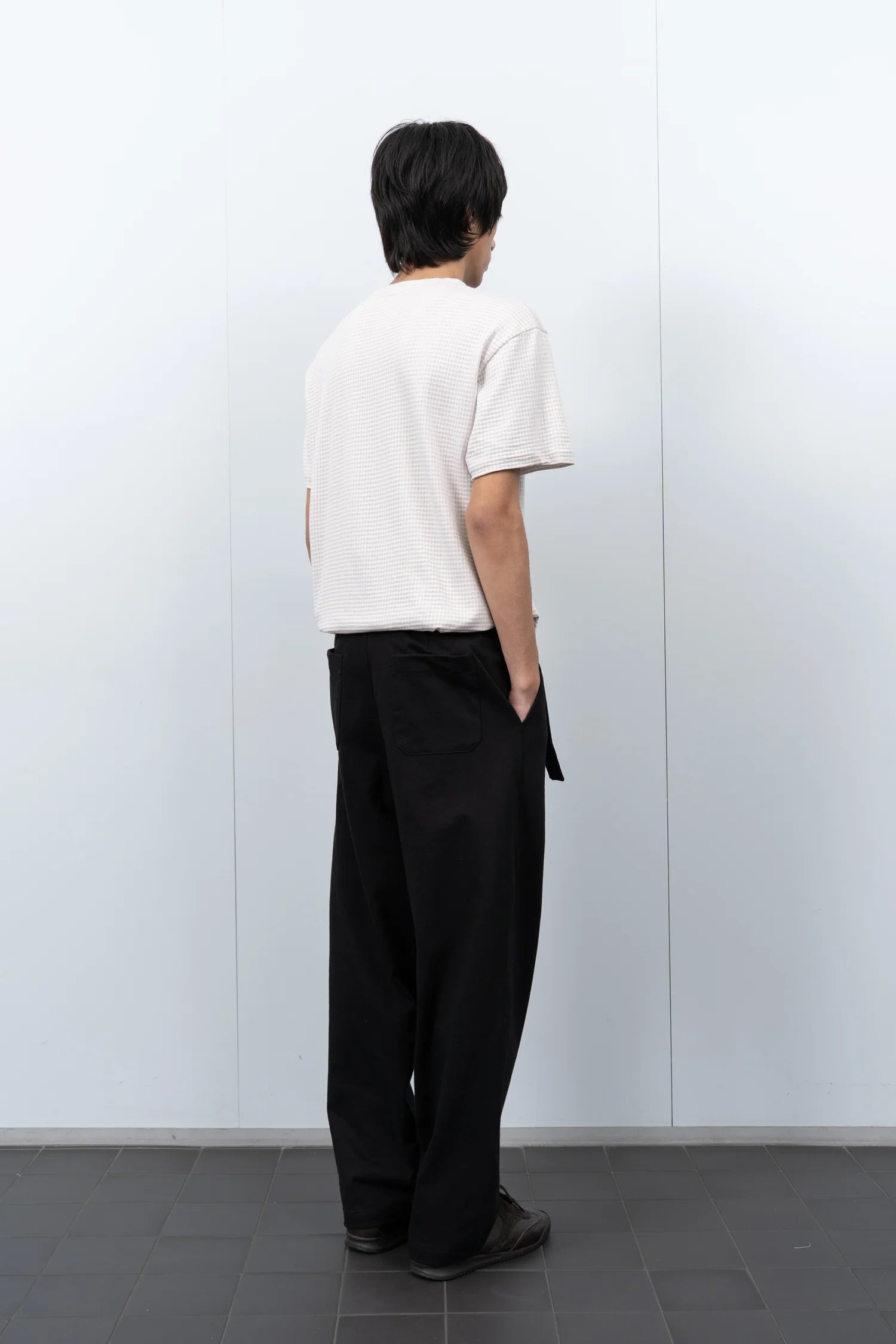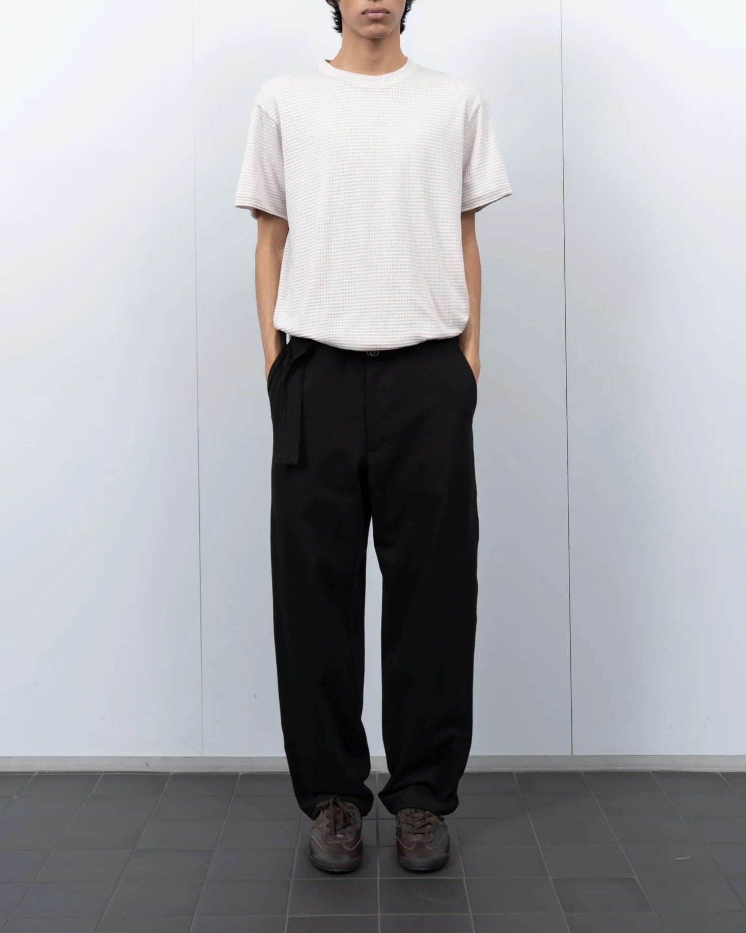 The Belted Jersey Trouser is their mid-rise, loose-fitting pant and a straight leg. Cut from their heavyweight Rugby jersey used on their t-shirts and jackets, the dense and firm knit lends a relaxed yet structured drape.