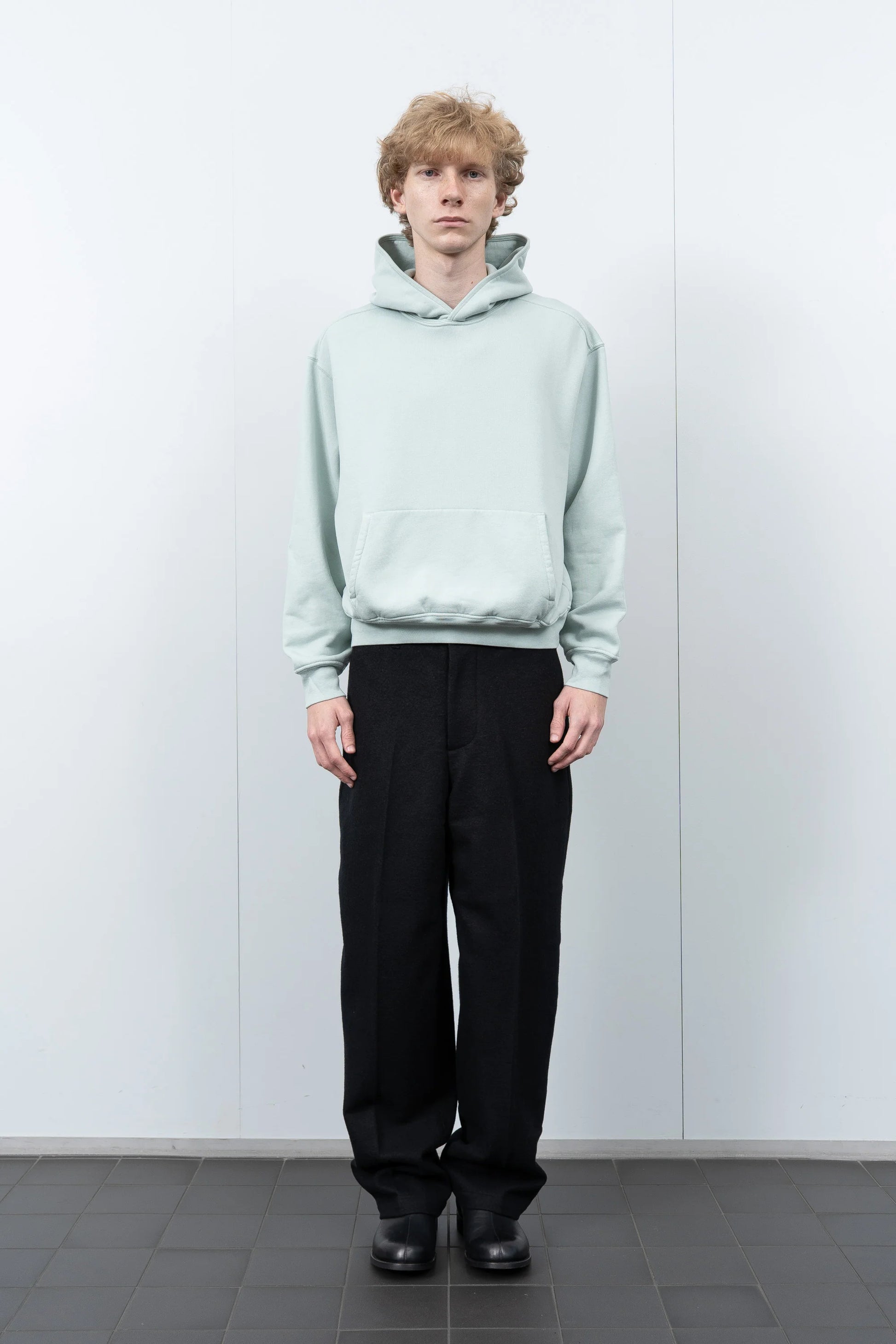 The Mini Hoodie uses their custom 13-ounce brushed fleece developed in Los Angeles. Cut short in the body but roomy in the chest that ends right at the waist. A generous sleeve balances the cropped proportions. Sewn with gusseted shoulders and side seams for movement.