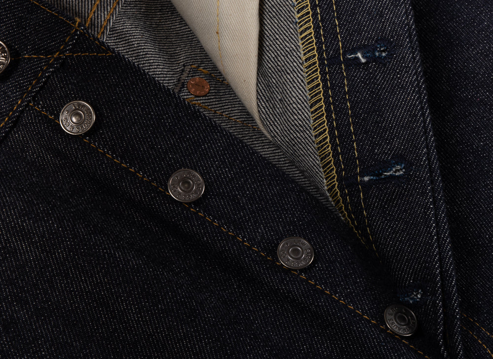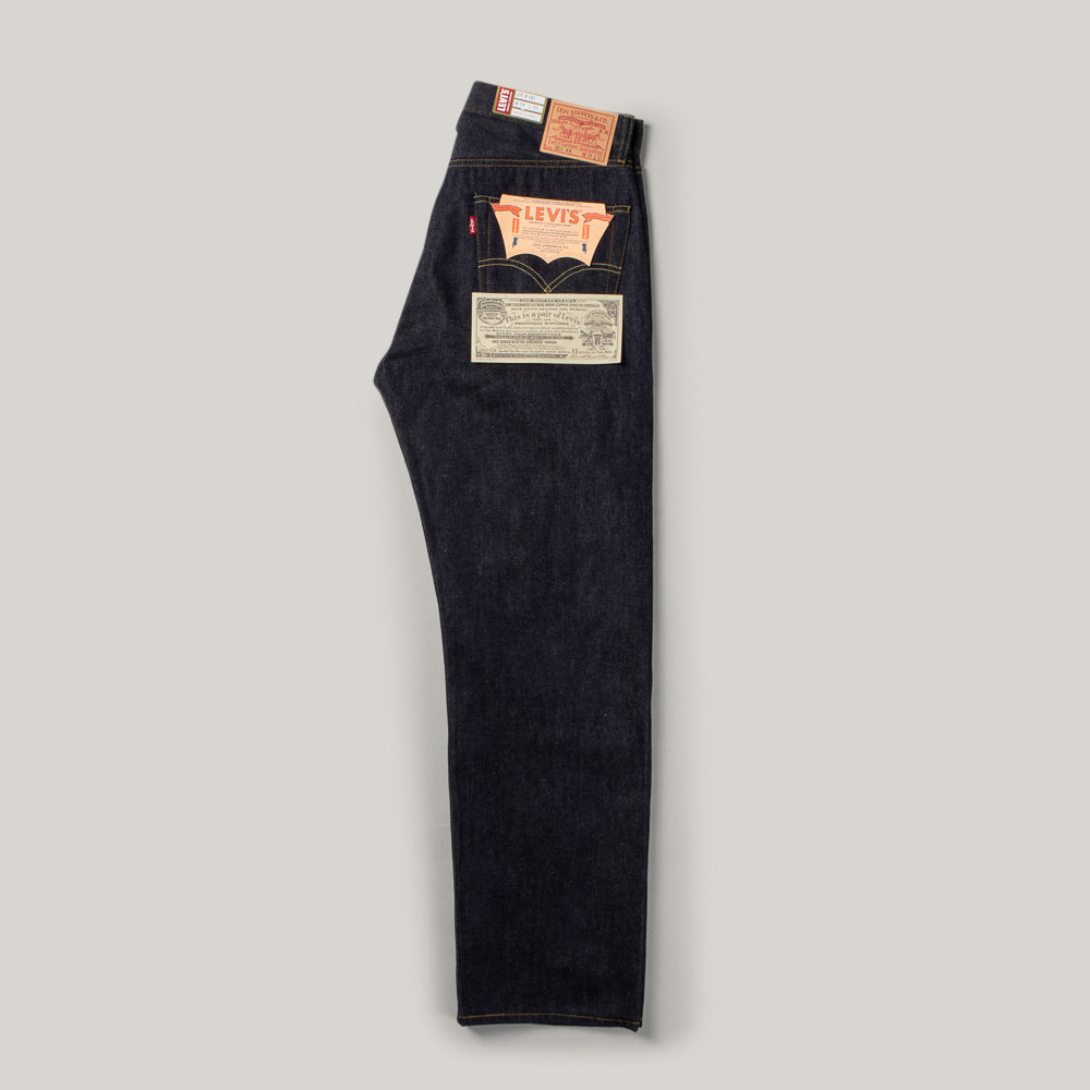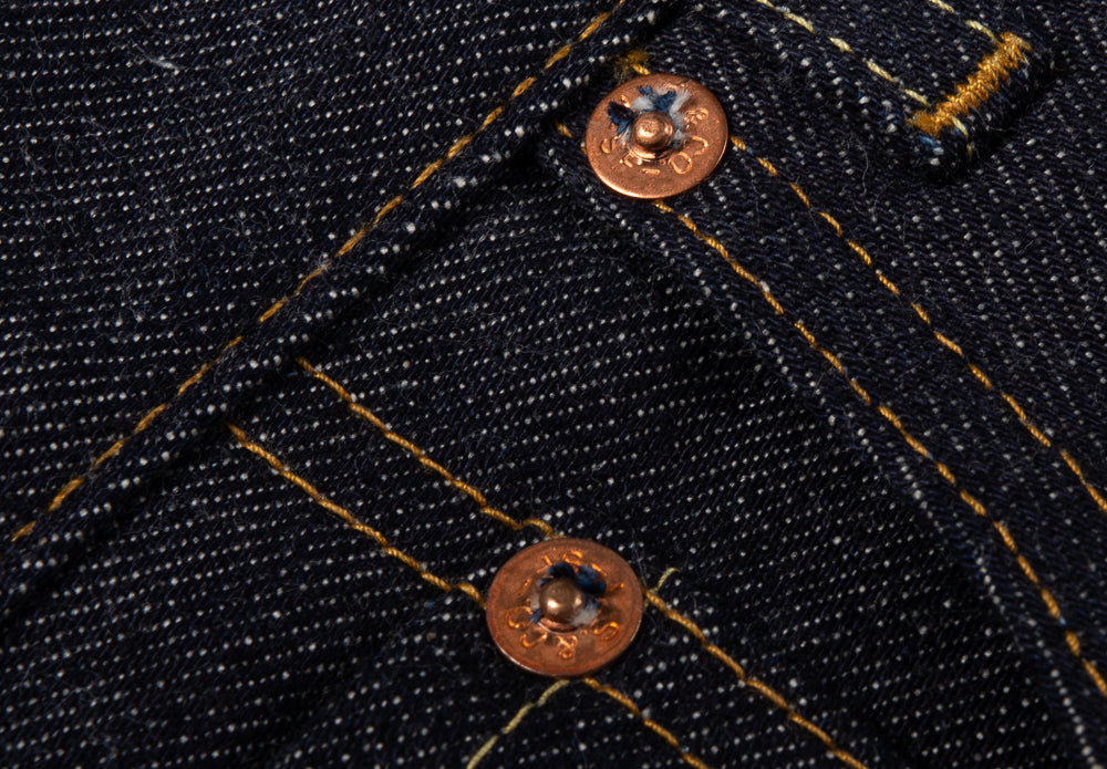 A classic 1950s biker style with an “anti-fit"" in the seat, slightly fuller cut around the leg and a boxier silhouette. The first to bear the Two Horse Pull on a sturdy, leather-like paper label instead of leather. Big “E” double-sided red Tab. Twin needle Arcuate. 14oz denim.