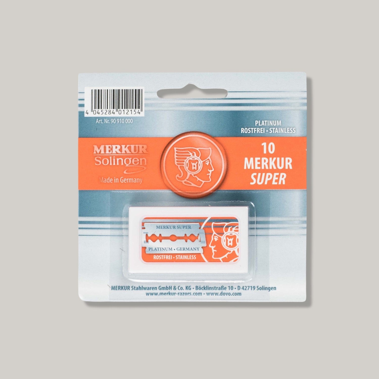 Merkur Super Platinum Blades will fit all traditional double edge razors. Each pack contains 10 rust resistant high-carbon stainless steel blades and feature a platinum coating for enhanced comfort. Each blade is individually paraffin wrapped and contained in a convenient 10 pack dispenser
