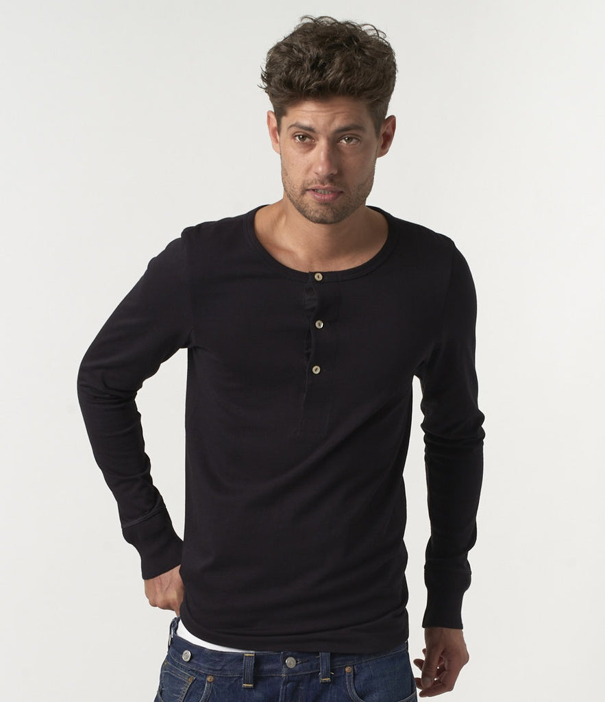 MERZ B SCHWANEN HENLEY SHIRT 206 - DEEP BLACK