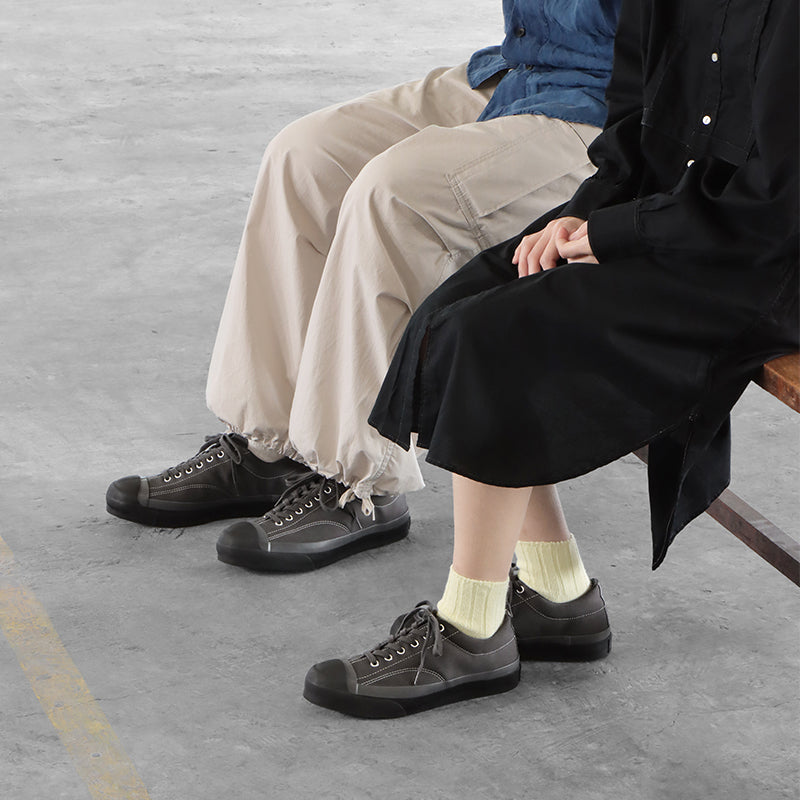 The hallmark of MOONSTAR is the vulcanizing, or ka-ryu, process in Japanese, performed by only a select handful of shoe manufacturers around the world. In the ka-ryu process, each shoe is fired in a kiln which causes the sulfur mixed inside the raw rubber to chemically react, returning the rubber to its natural elasticity and creating a soft, flexible, and durable sole.