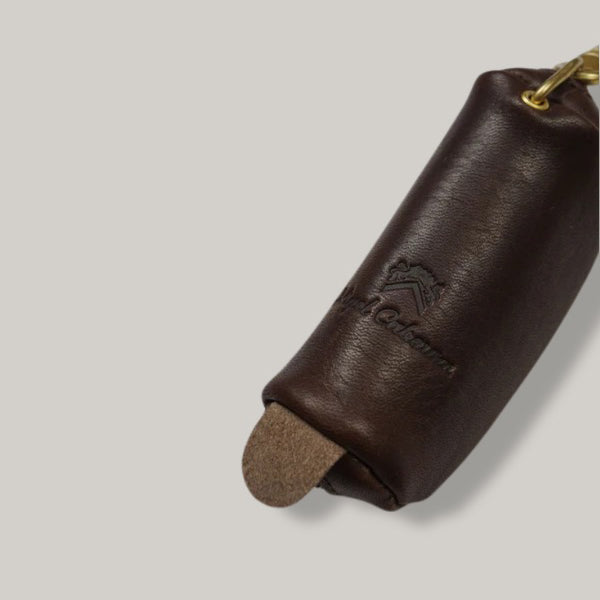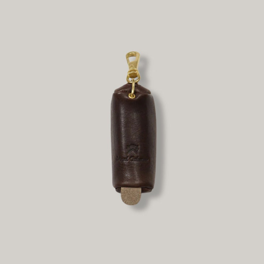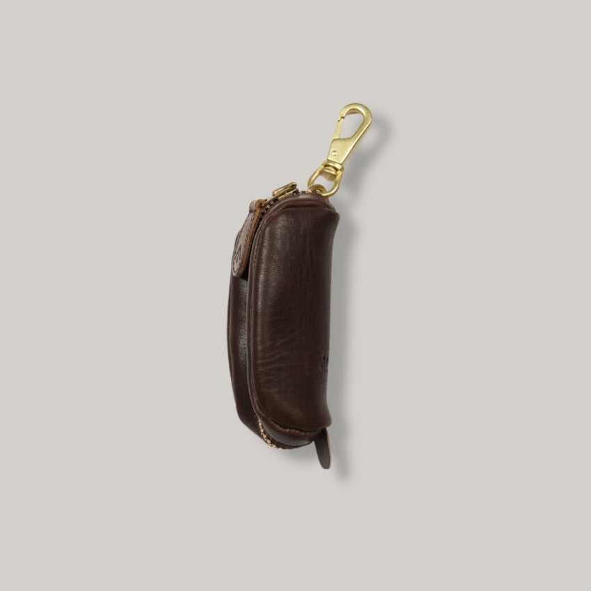 Zipped key case with brass hardware and embossed branding, all made in top notch Horween leather