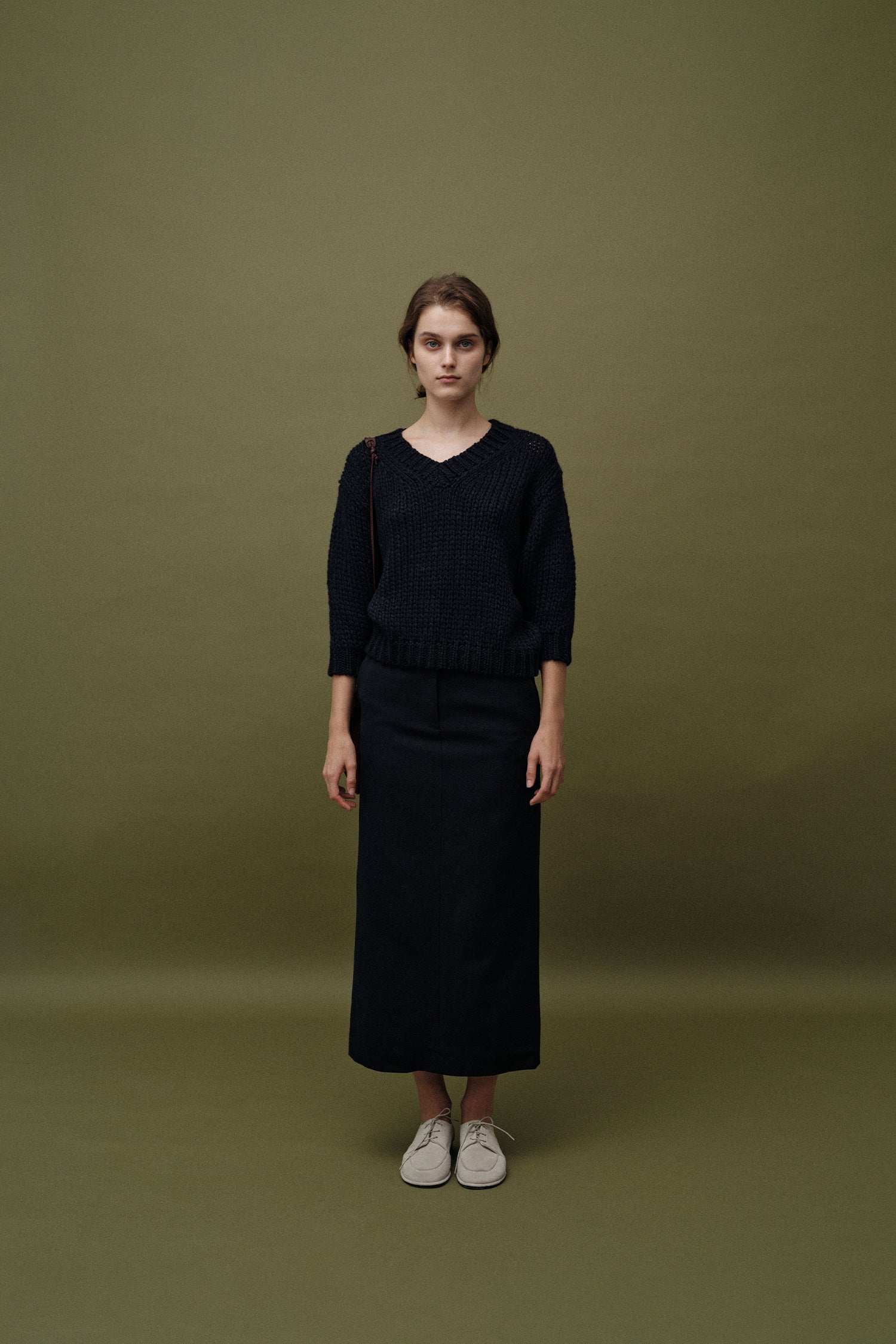 NOTHING WRITTEN WIDE V-NECK SWEATER - NAVY