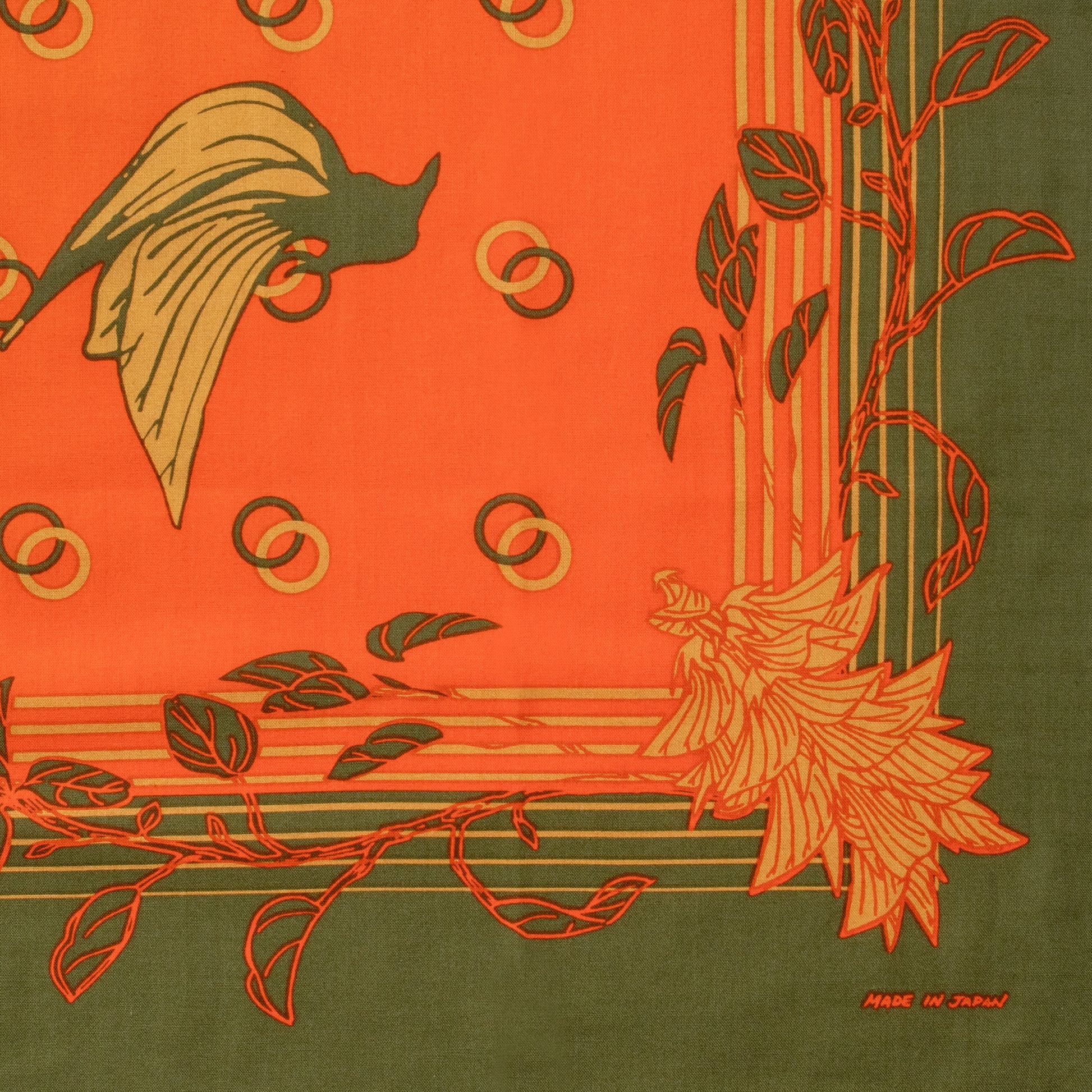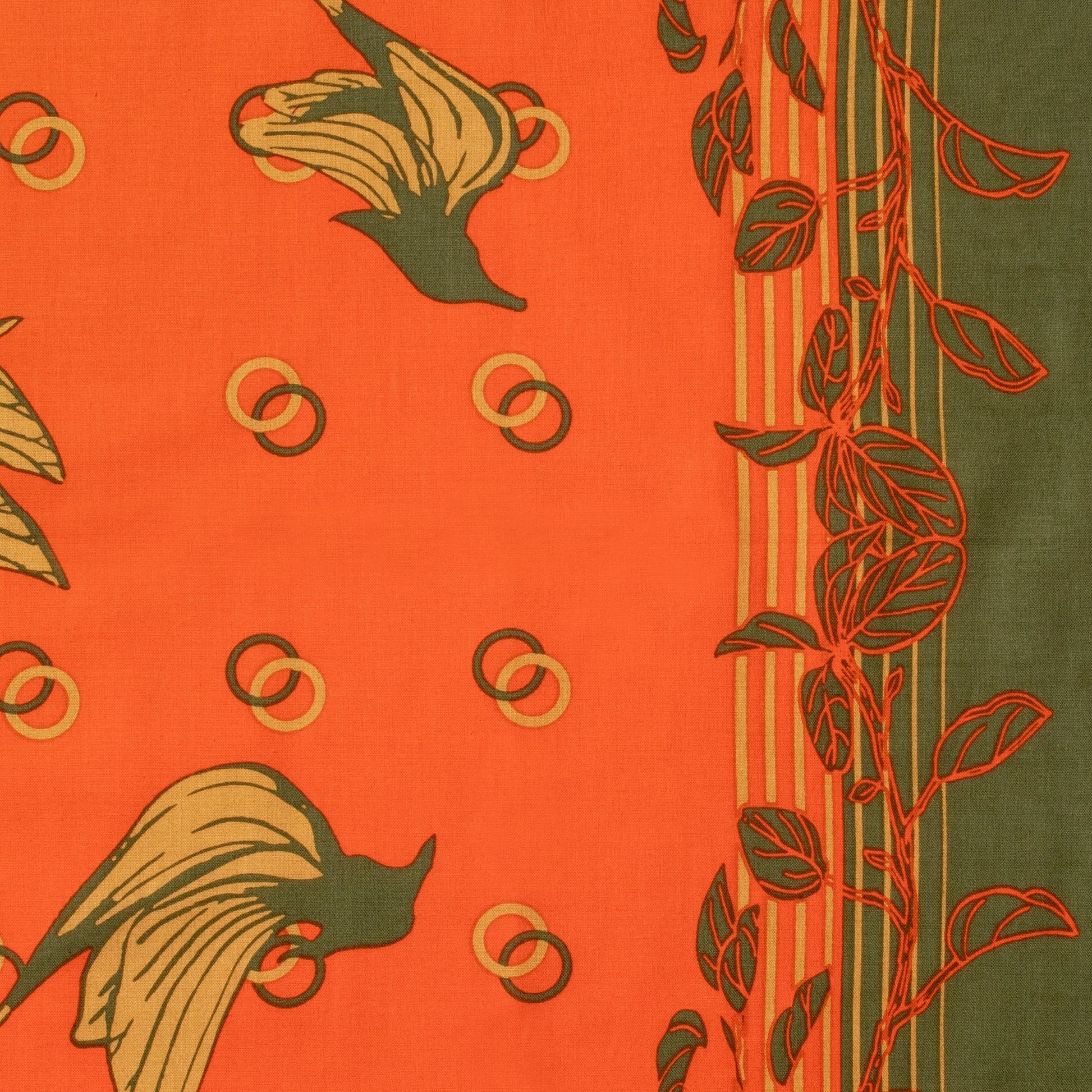 This curious design is based upon the meme-able plant Crotalaria cunninghamii. Also known by the common name of parrot pea, green bird flower etc etc etc. It is native to Australia and blooms the green flowers from January to April. It is a plant that has had some interesting attention on social media lately. Due to its resemblance to a bird, most people think this is a miracle. To a botanist however, this is a pretty normal Fabaceae flower/fruit structure. It is an interesting and beautiful plant. Starting with a mutual fondness for bandannas and plants, Jonathan used our store’s colour scheme as the palette and their location as the design inspiration. Crotalaria flowers and leaves, with symbolic rings of collaboration and commitment. Funky, cool green and orange colour scheme that works all year everyday. We hope all our customers will enjoy this design and its unique Aussie twist on the bandanna.