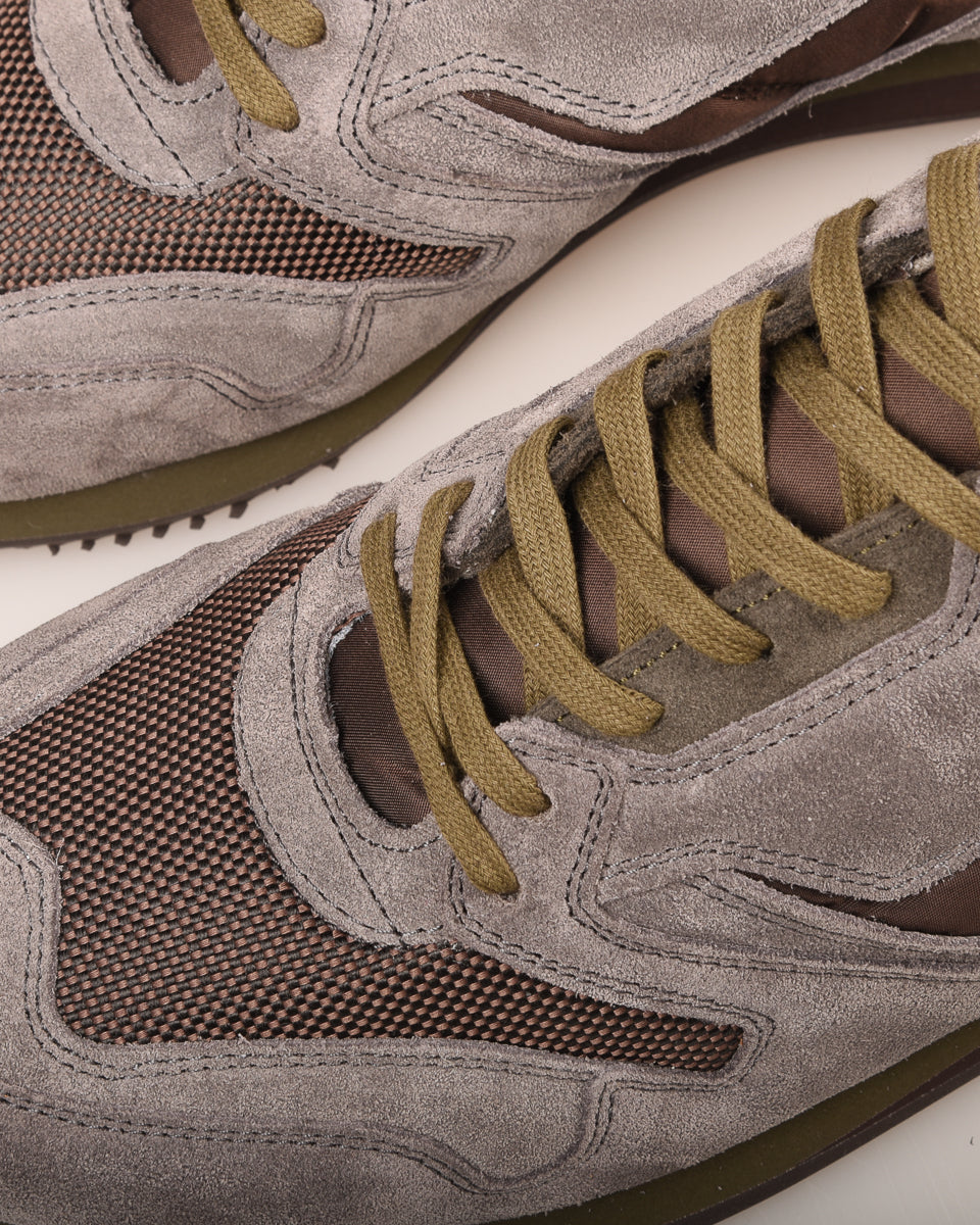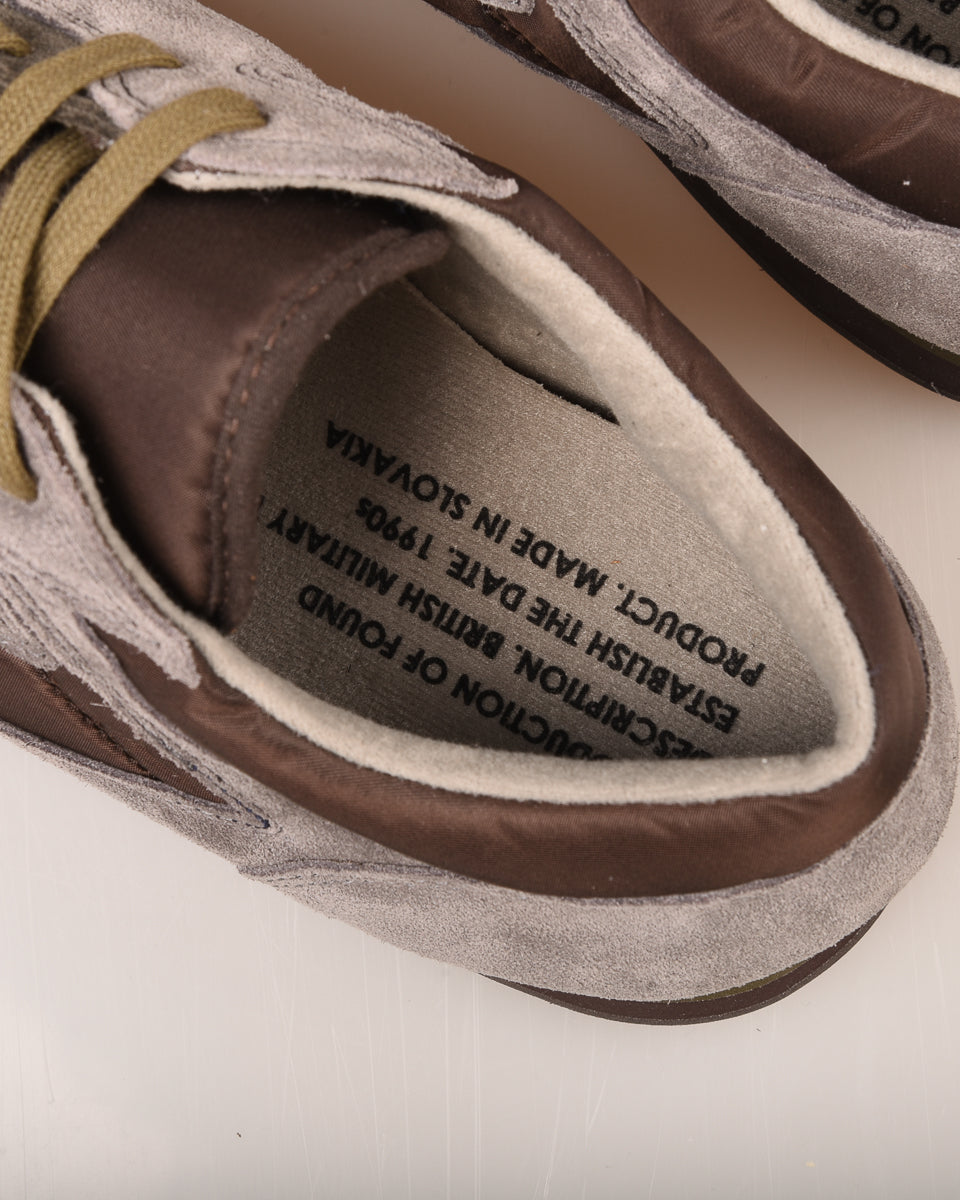 The Training shoes, commonly known as ‘British Trainers’, were adopted by British military in the 1990s. The Royal navy had the Hi-tec Silver Shadow, (another iconic model of the time) the Army had these. Reproduction of Found actually requested the production to the factory that produced the originals and it was reproduced modernly. Using a combination of high-quality Italian suede leather and Italian nylon for the upper with having the unique cutting, the lining has enhanced breathability by fabric suede and mesh. The thick EVA sole shows sign of characteristic aspects of military products: functionality and comfortable wearing.