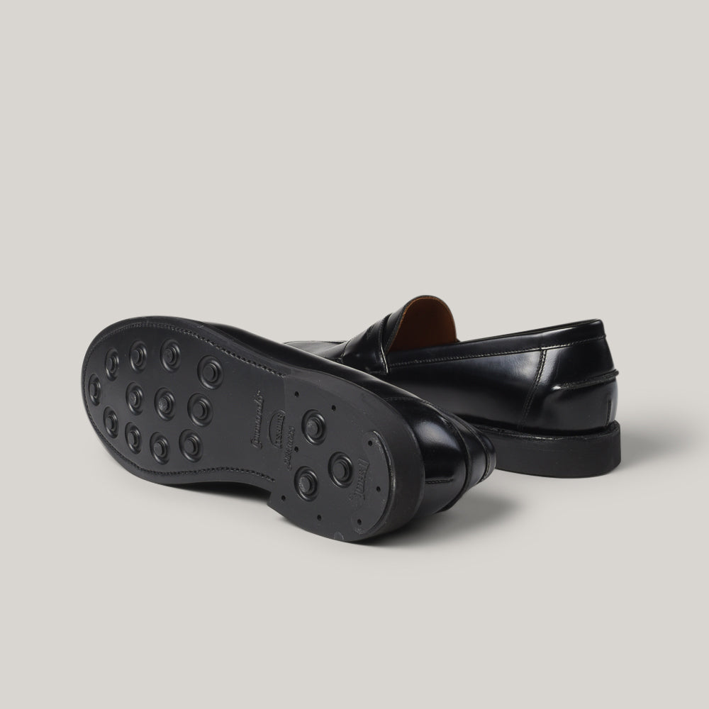 The most classic of casual shoes, the penny loafer, worn by king and kinsman alike. The perfect end to any outfit, or start, depending on how you look at it. Goodyear welted, naturally so it can be resoled time and time again, with a 100% leather insole, the upper is high polished leather and the sole is a studded rubber commando for traction, comfort and durability. Classic, chic & refined
