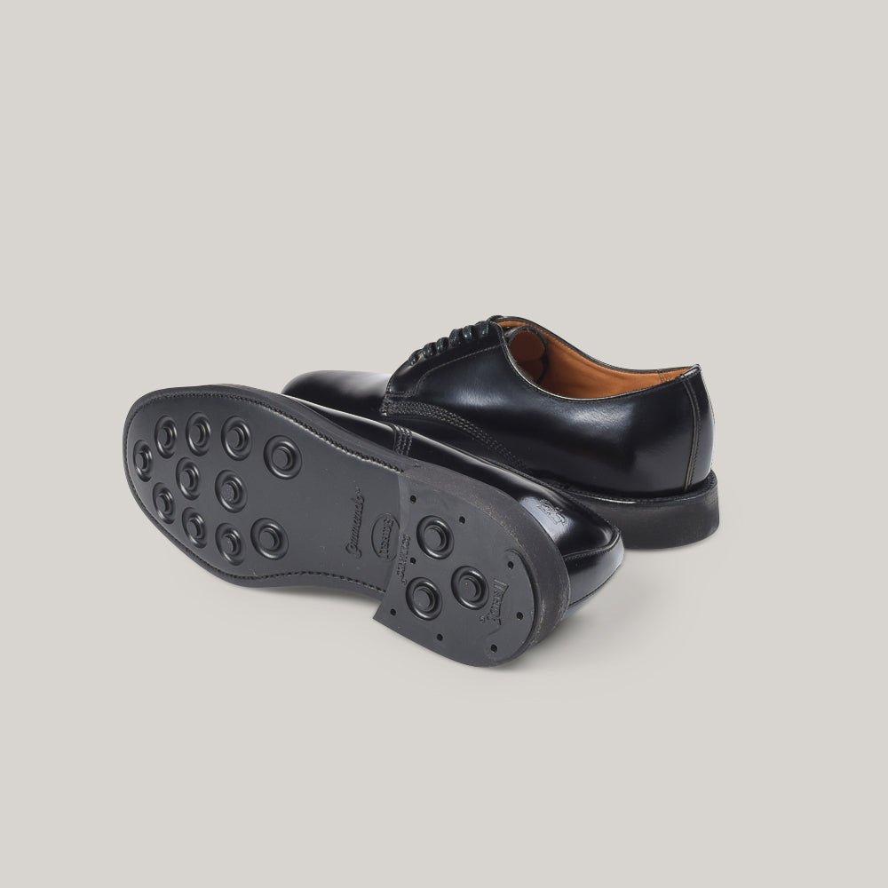Sanders bring the goods with this female version of the military derby shoe. Built with the same provenance as its male counterpart, it is sleek, strong, comfortable and smart as hell. The perfect accompaniment to almost every formal and smart casual outfit, it is incredibly versatile. Goodyear welted, naturally so it can be resoled time and time again, the upper is high polished leather and the sole is a studded rubber commando for traction, comfort and durability. An absolute classic.