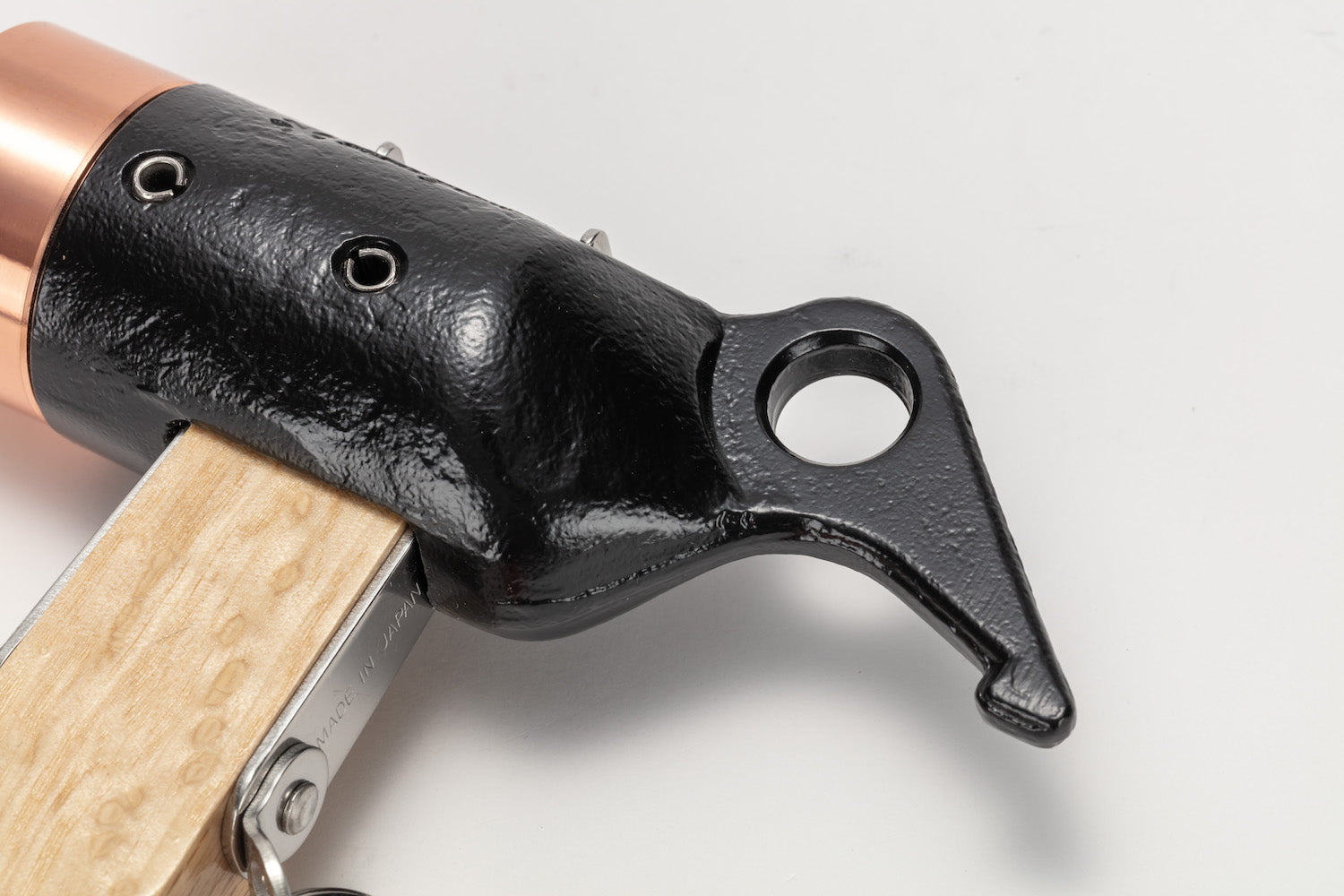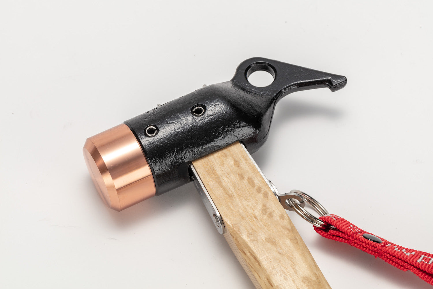 Designed in Japan, the Copper Head Peg Hammer is made of forged steel using a historic manufacturing process. Use it to drive and remove Solid Stakes into the ground. The copper head will decrease shock while hammering and provides an even blow. The Copper Head Peg Hammer also features a solid wood handle, a strap for safe hammering, and an extended head for easier stake removal.