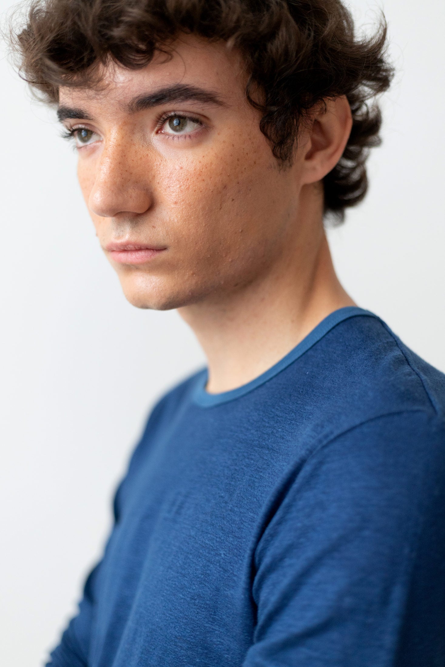 This simple and versatile long-sleeved T-shirt is made from European linen. A highly breathable jersey that will keep you cool in summer and warm in winter, making this shirt the perfect base layer.