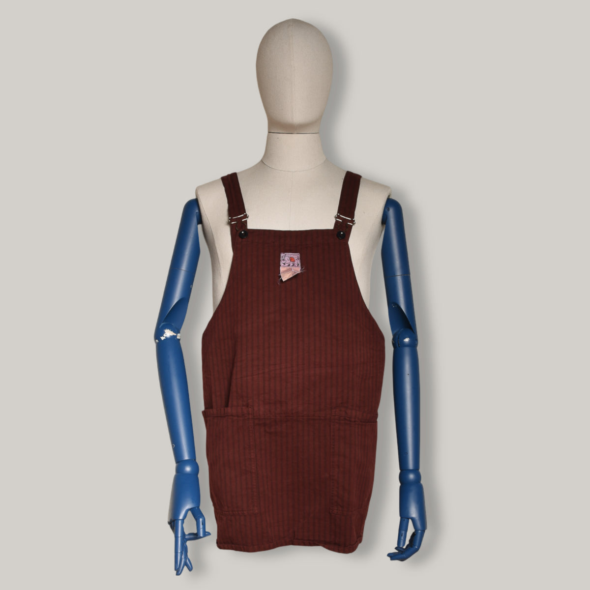 the shoulders.The straps are adjustable at the front with bent wire dungaree clips. The chest of the apron is lined, ending just below the pocket tops, which are supported by two layers of fabric and finished to Tender shirt standards.