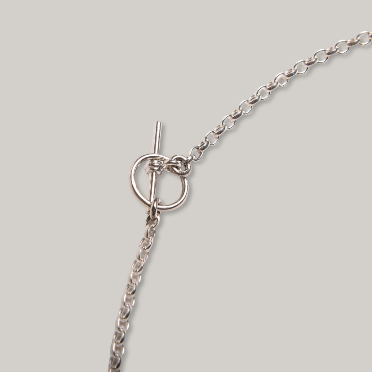 The necklace is fastened with a matching solid .925 silver T bar and O ring.