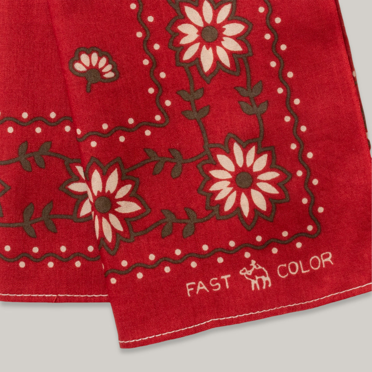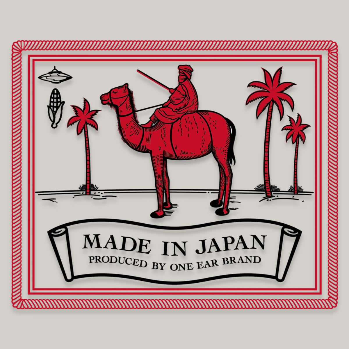 Camel brand was a now defunct bandanna brand that was a sub-brand of the Elephant brand. During the 1930s-1940's there were a small rare set of these bandannas made with a camel logo. They are prized and regarded by fast-colour bandanna collectors. They are usually small and feature floral or very simple designs. We have resurrected this brand from the depths of obscurity and given it a new high-quality twist. Featuring our original 50x50 cm selvedge fabric, these are printed as carefully and thoughtfully as our mainline. Even though we normally don't do small bandannas we have decided to reproduce these old rare designs for people to enjoy again. In addition to the bandanna designs we have created what we feel, as a thoughtful reproduction of the camel brand sticker which there seems to be no actual print of. We have plenty of evidence but no absolute proof. So we asked our friend Satoshi Kaga, to draw an original reproduction. We feel this is the best representation of the original. These will be branded in two options in the future as "red camel" and "blue camel". Produced and designed by One Ear Brand.