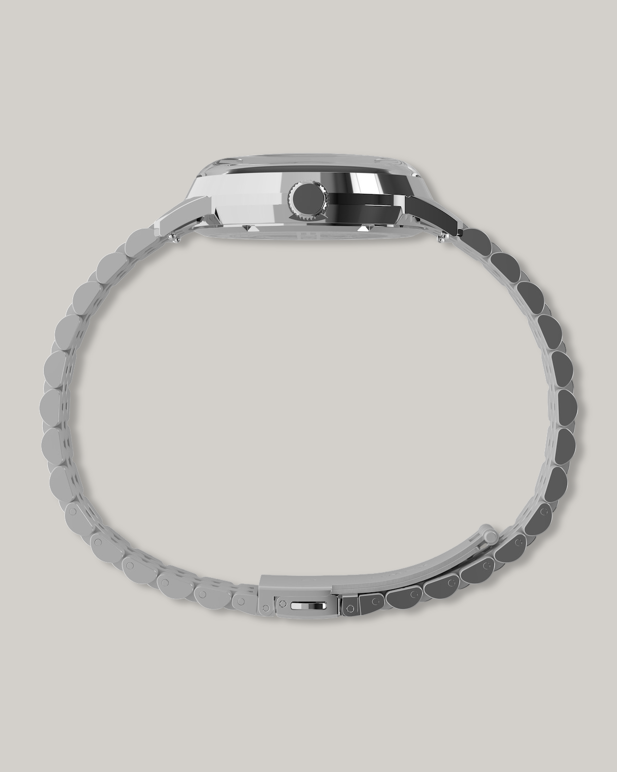 The Marlin Quartz GMT brings dual time zone tracking to their ‘60s Marlin. Housed in a 40mm polished stainless-steel case, the sunray dial presents faceted markers, a date window, and a sophisticated tonal GMT index accompanied by a prominent red triangle GMT hand. Keeping in line with its Marlin heritage, this timepiece features a vintage-style domed acrylic crystal, and they’ve paired it with a brushed and polished stainless-steel bracelet.