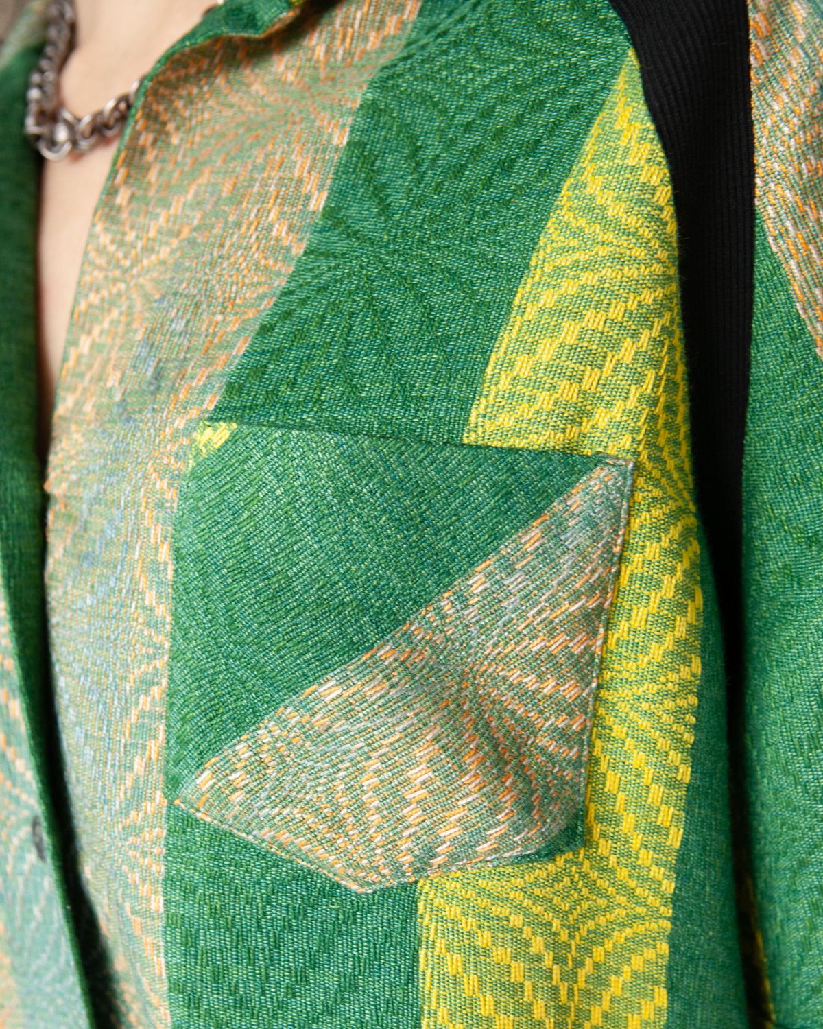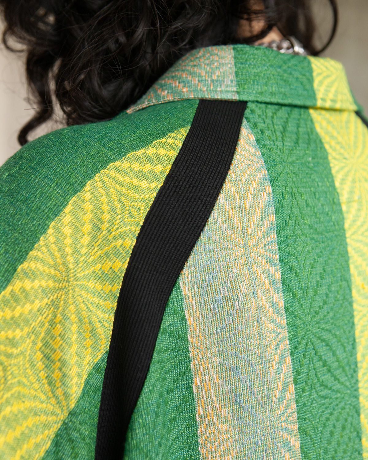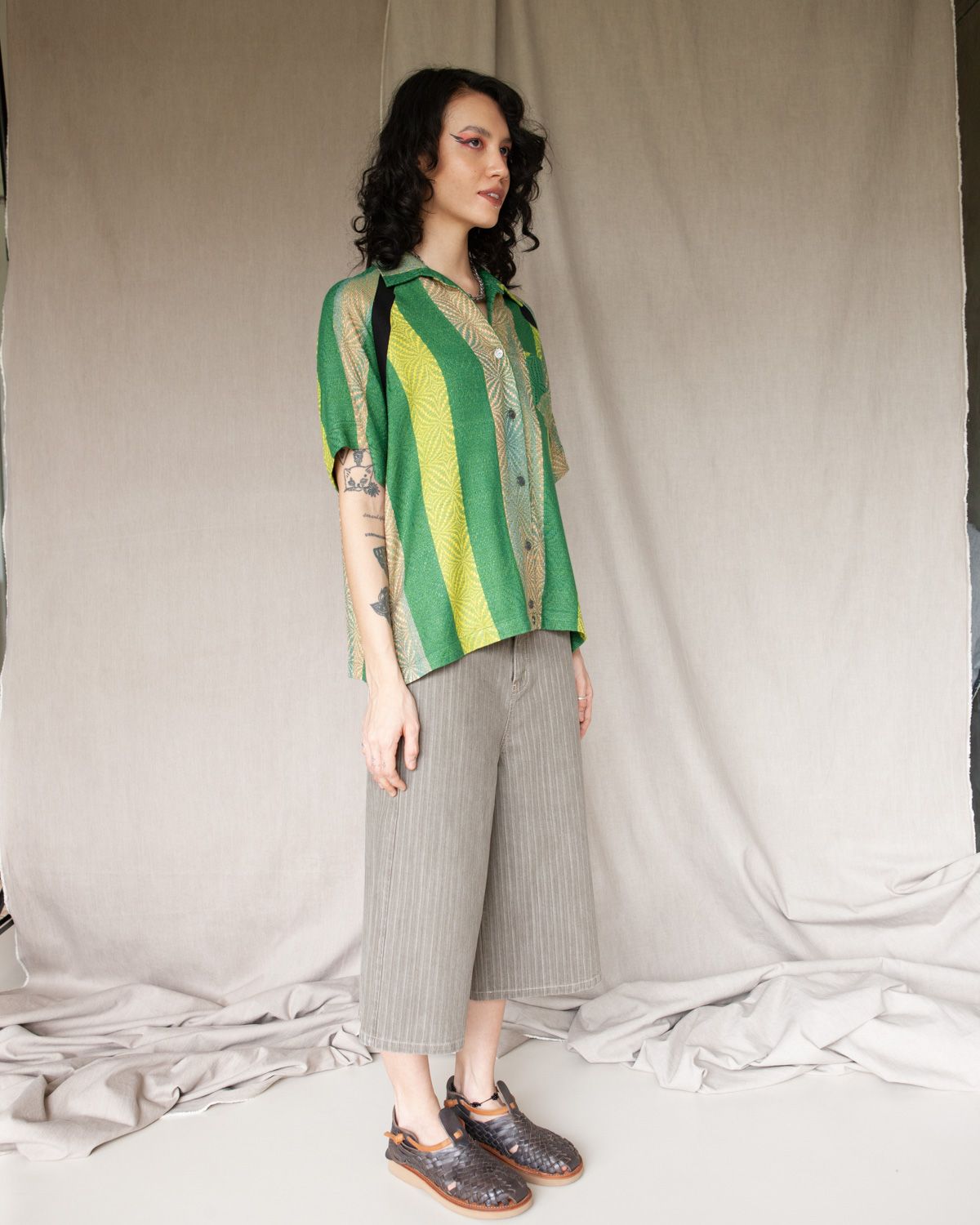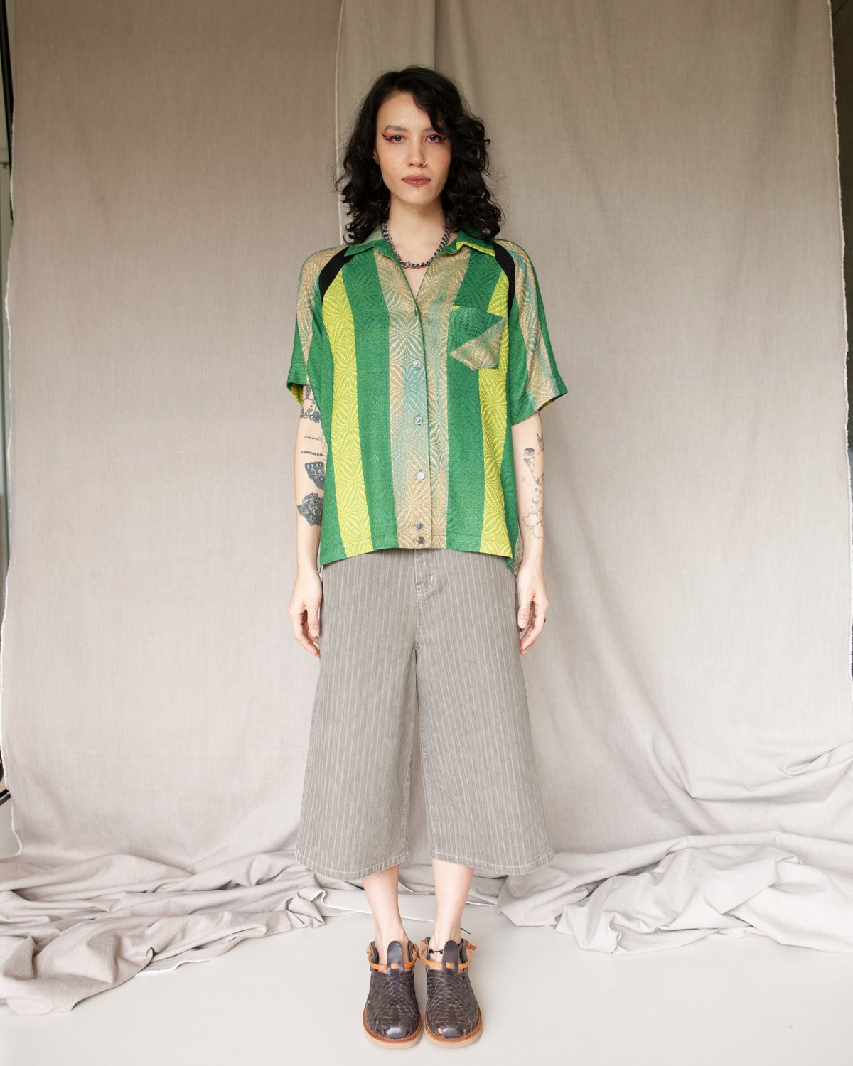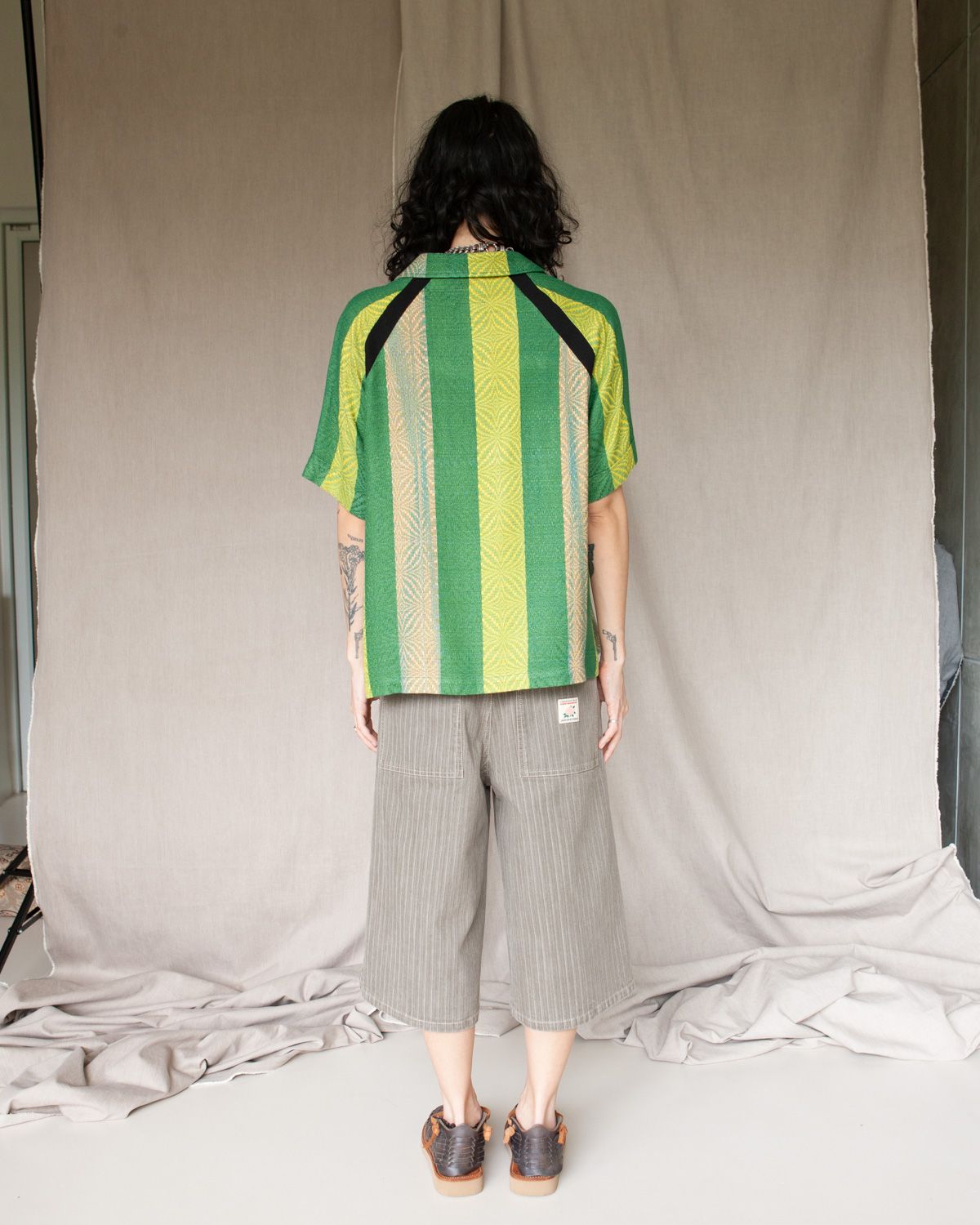 W'MENSWEAR BOWLING SHIRT - GREEN STRIPE