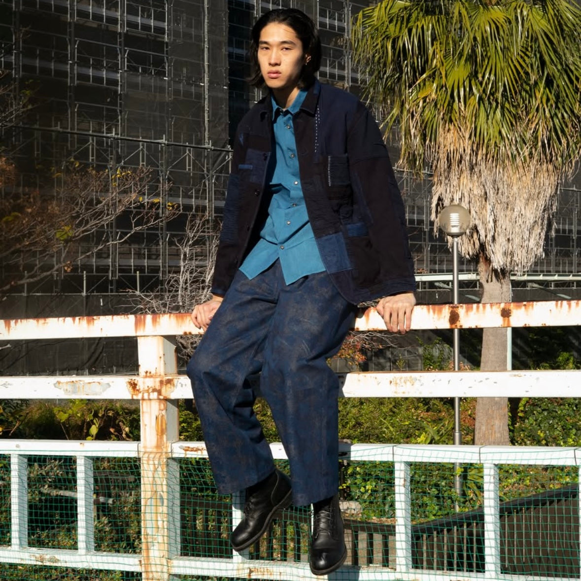BLUE BLUE JAPAN PURE INDIGO SASHIKO NENRIN COVERALL JACKET - INDIGO