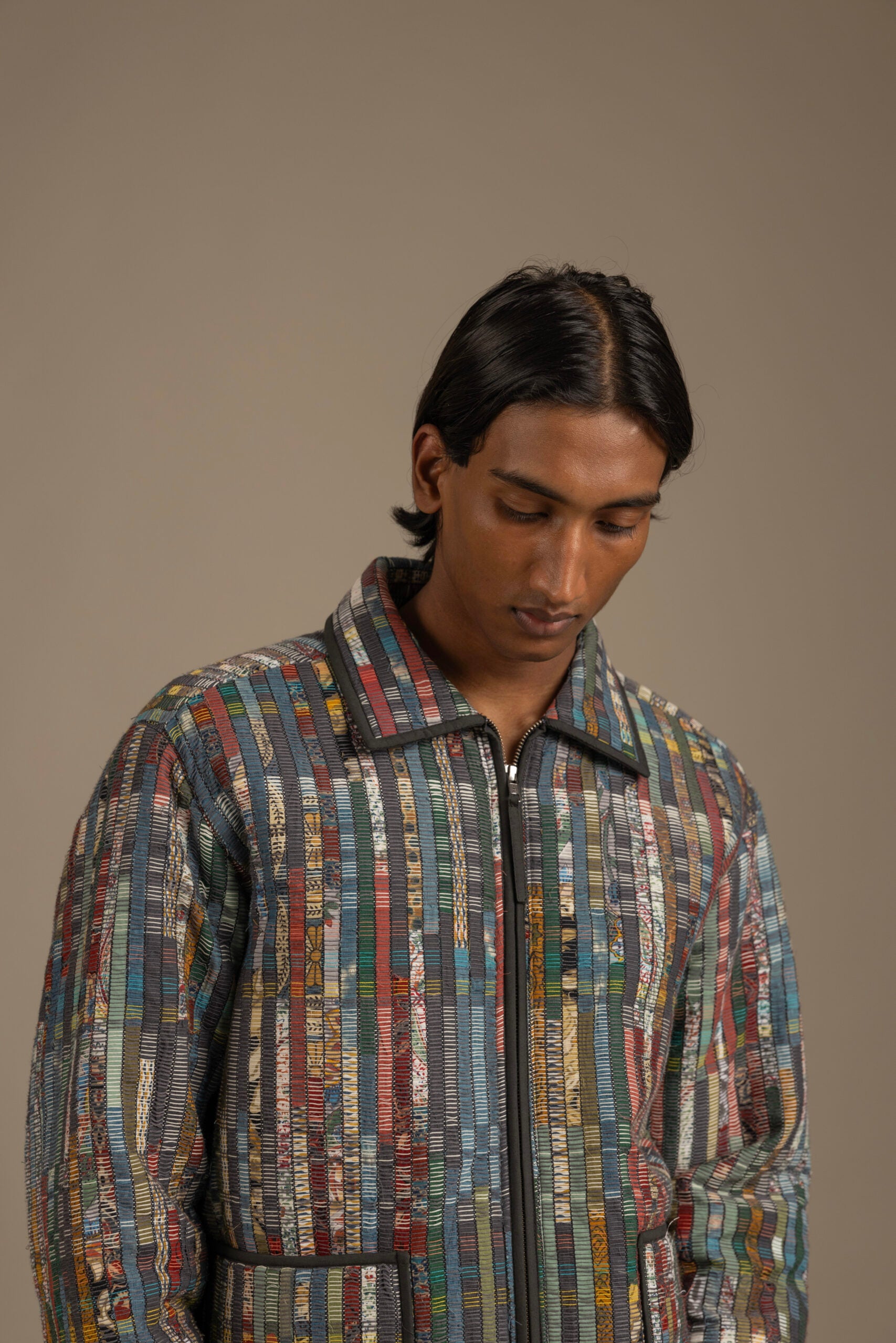 BLUE BLUE JAPAN INDIGO SASHIKO HAND DYED ZIP UP JACKET