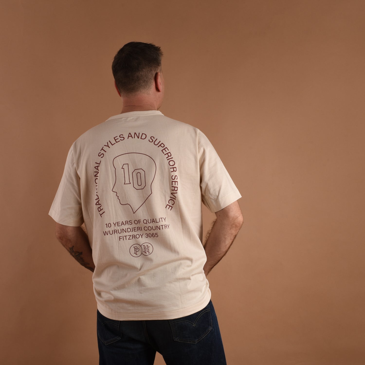 With this next anniversary collaboration, we wanted to celebrate all those heads that have come through the door and often let us cut their hair time after time after time. We always said we would never make a printed t-shirt… Unless we could produce it on one of the best quality t-shirts out there. We've always loved the idea and accessibility of a souvenir t-shirt but often the results are a badly made product, using a cheap base and cheaper inks, which definitely was not for us.