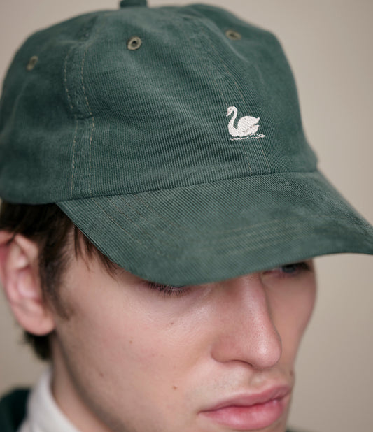MERZ B. SCHWANEN CORDUROY SWAN LOGO CAP - FOREST