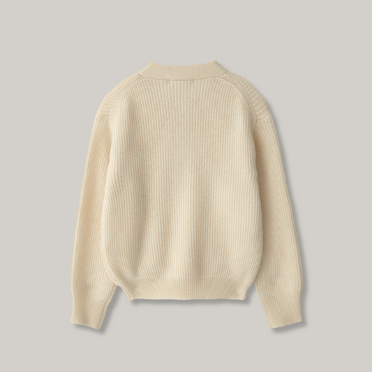 NOTHING WRITTEN SHETLAND WOOL HENLEY - NECK PULLOVER - IVORY