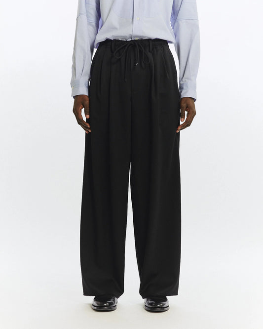 MARKAWARE WOOL GABARDINE TRIPLE PLEATED EASY TROUSERS - BLACK