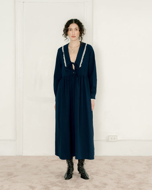 A BRONZE AGE WOOLF DRESS - NAVY DIMPLE