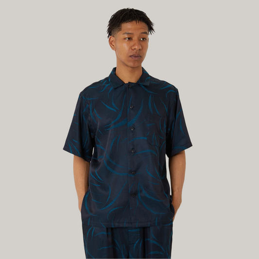 BLUE BLUE JAPAN MEBUKI SATIN OPEN COLLAR SS SHIRT - DARK NAVY
