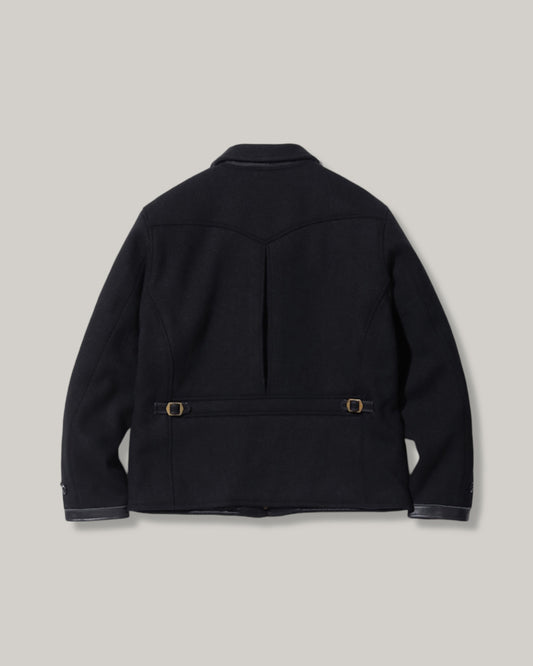 SUGAR CANE WOOL MELTON SPORTS JACKET - BLACK